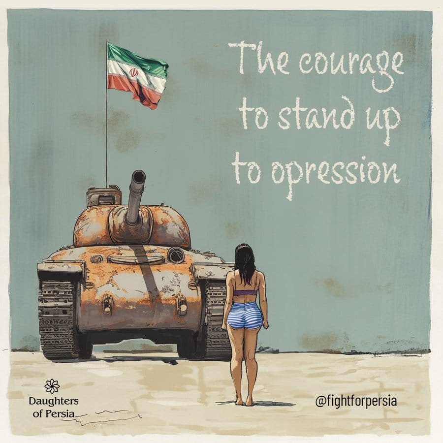 The hashtag galvanized a flood of artistic representations of Daryaei’s defiance, depicting her in powerful symbolic scenarios: towering over a city teeming with morality police, standing defiantly before a tank, or breaking through a wall emblazoned with the Islamic Republic’s flag. These visual portrayals, which have dominated social media and even appeared in graffiti form, parallel other iconic symbols of resistance, such as the "Tank Man" photograph taken by Stuart Franklin during the Tiananmen Square protests of 1989 in China.