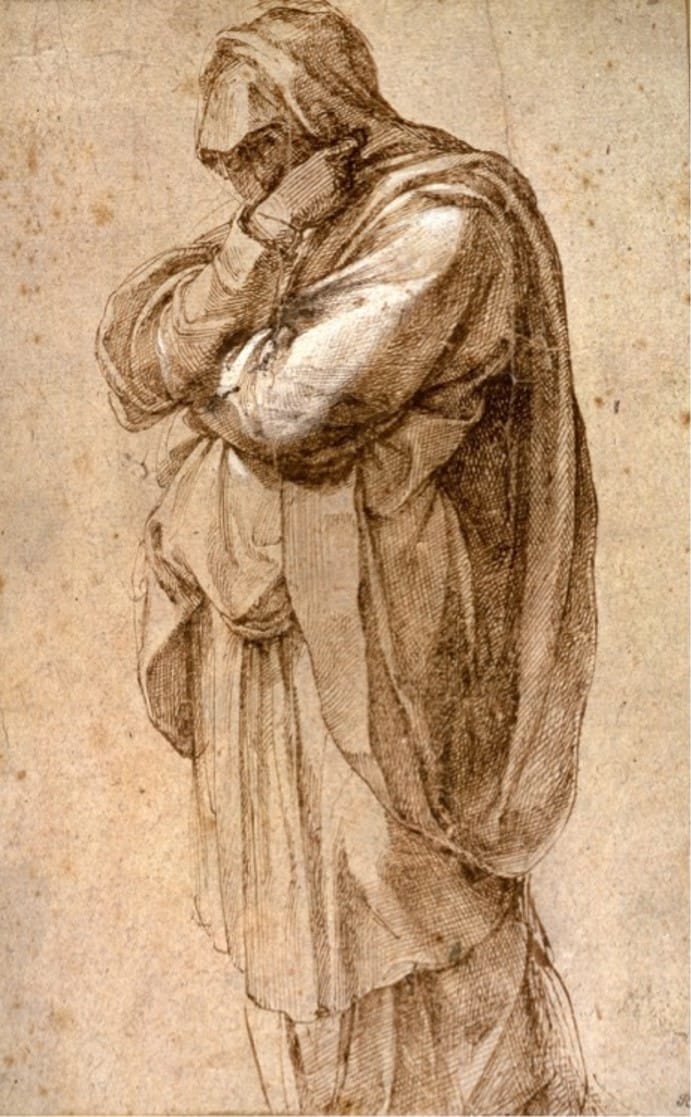 Among the acquired masterpieces is Parmigianino’s incredibly detailed ink drawing a young man’s head, portrayed frontally, and a drawing by Michelangelo of a woman in mourning who hides her face within the folds of her draped garment. The latter was discovered in 2000 at Castle Howard in England and was valued then at £8 million (~$10.4M USD).