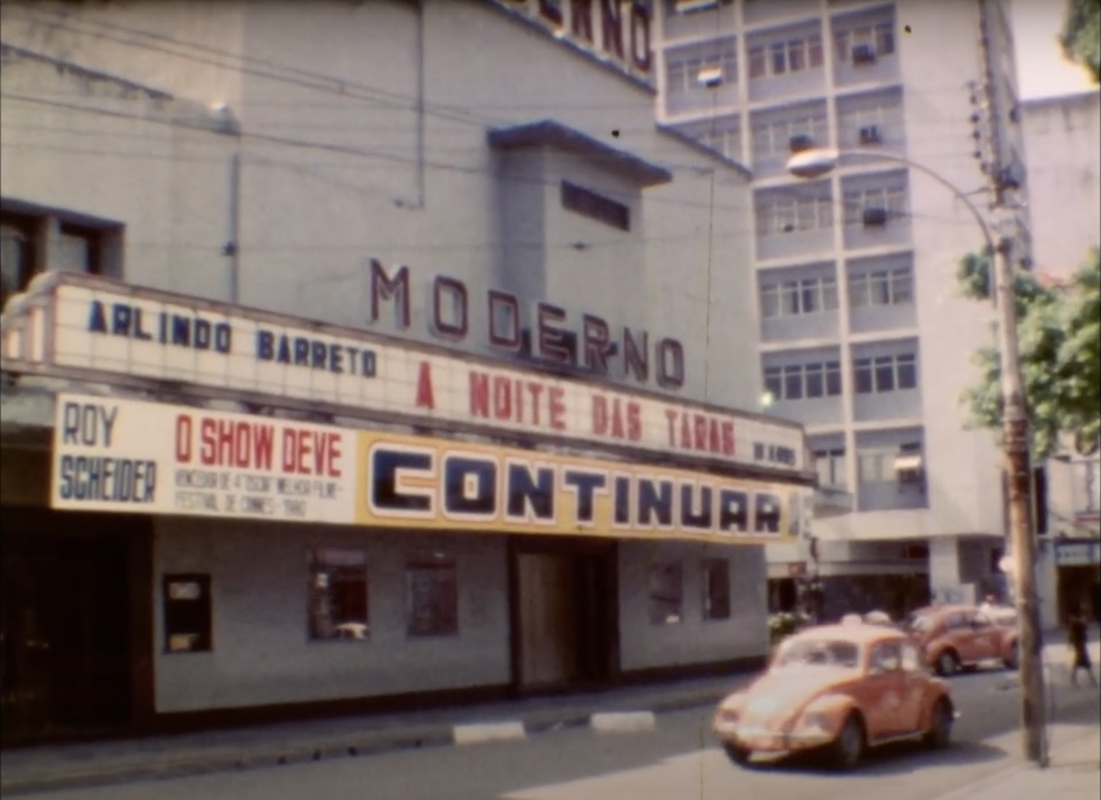 Sorting through home movies, archival photographs, and clips from his own work (Neighboring Sounds along with his earlier documentaries and shorts, plus 2018’s Aquarius), Mendonça Filho creates a time machine shuttling between different moments in Recife during his lifetime. Grainy footage from his youth in his family’s apartment cuts to home video images of the playful movies he made there as a child, then transitions to professional film he shot there as an adult, followed by contemporary digital footage of his young children in the same hallways. He deploys this simple but effective method of direct comparison between past and present throughout; for example, we see the Art Palácio, once a venerable movie palace where Mendonça Filho both saw films and worked, in its beautiful heyday and as it is now, boarded up, its paint peeling.