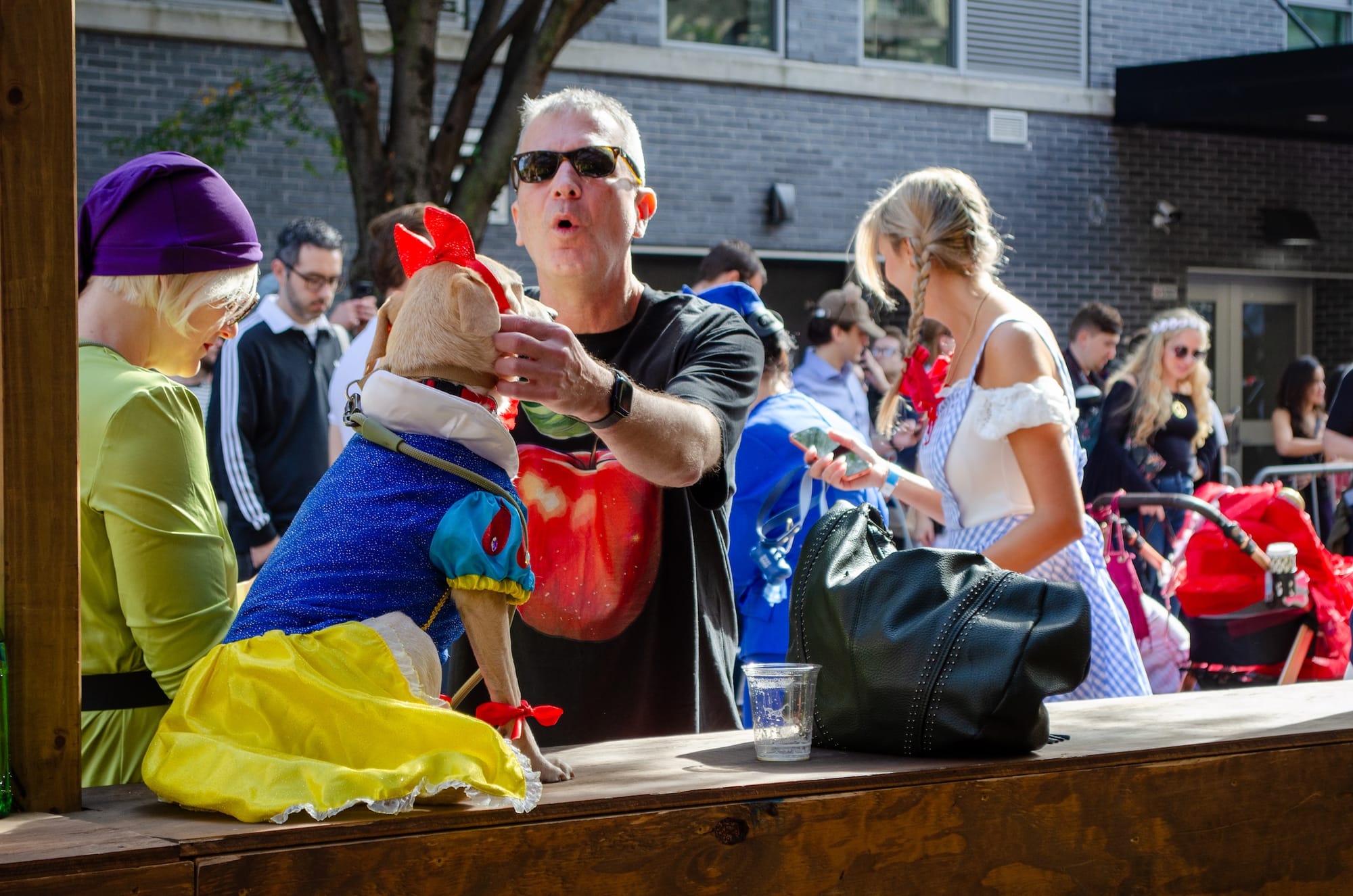 Following the slow-moving puppy procession down Avenue B, the most extravagant dogs in costumes took to a tiny stage, excessively dwarfed by an enormous crowd. Last year, the event's longtime organizer Joseph Borduin vowed to never organize the parade again, saying that it had become "too much." This year's event was organized by the nonprofit New York Dog Parade and sponsored by the dog treat company Stella and Chewys.