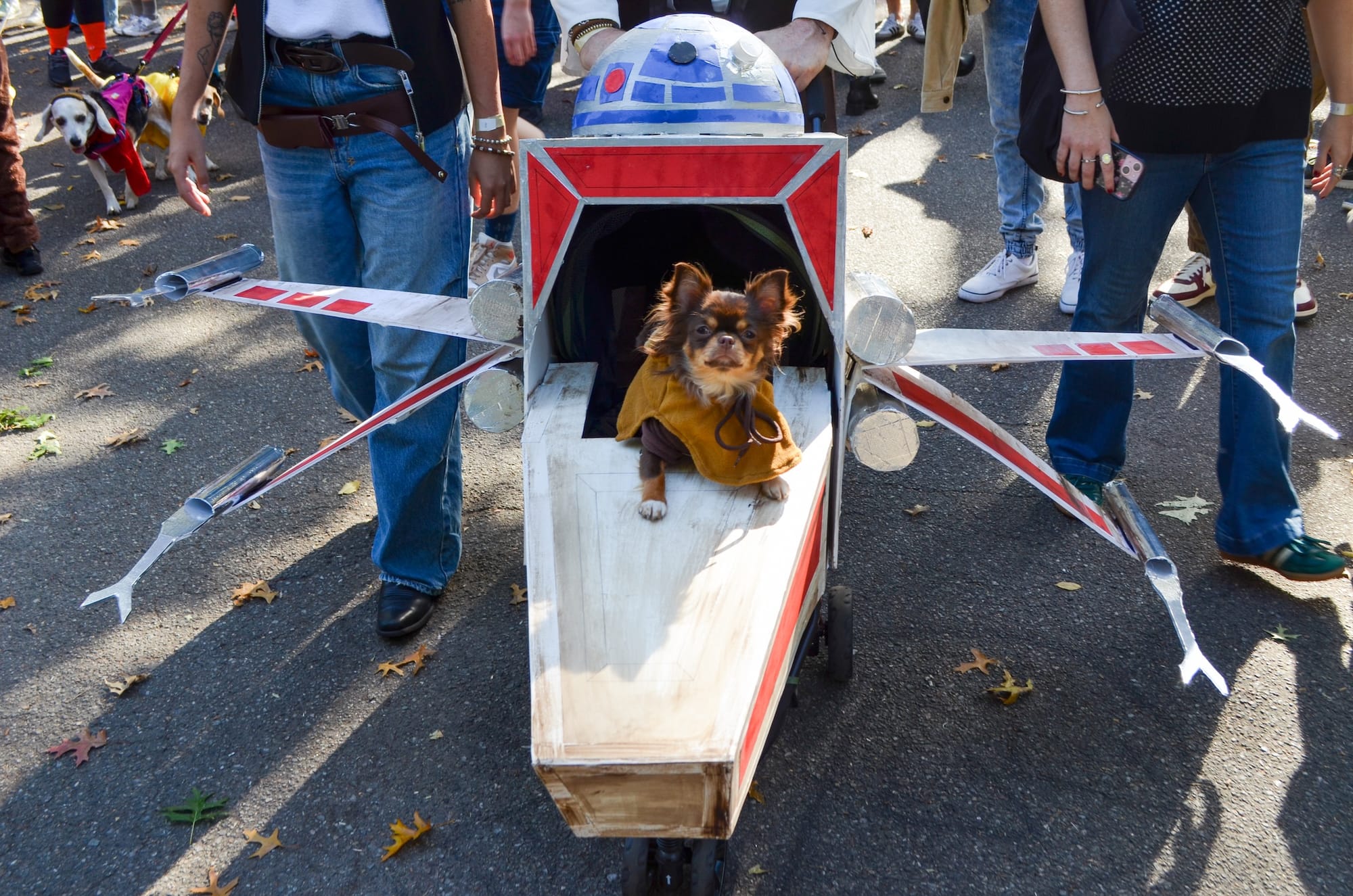 After the parade, dogs in costumes lingered in the vicinity at the feet of their owners as spectators moved to local restaurants. See more photos from the 2025 Tompkins Square Halloween Dog Parade below.