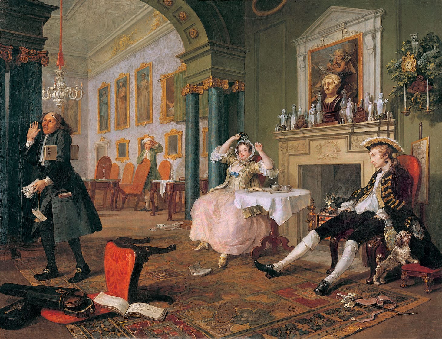 All this serves to set William Hogarth the Londoner among his continental friends and rivals who were working in Amsterdam, Paris, Venice, and elsewhere. They didn't half move around, these self-employed artists/entrepreneurs. Hogarth skipped off to the Continent; Canaletto, bored by reprising yet another Grand Canal-side scene of Venice for those puffed-out, sedan-chaired idlers on the Grand Tour, decamped to Beak Street in London to sprinkle a bit of his visual magic in the direction of unsuspecting English clients.