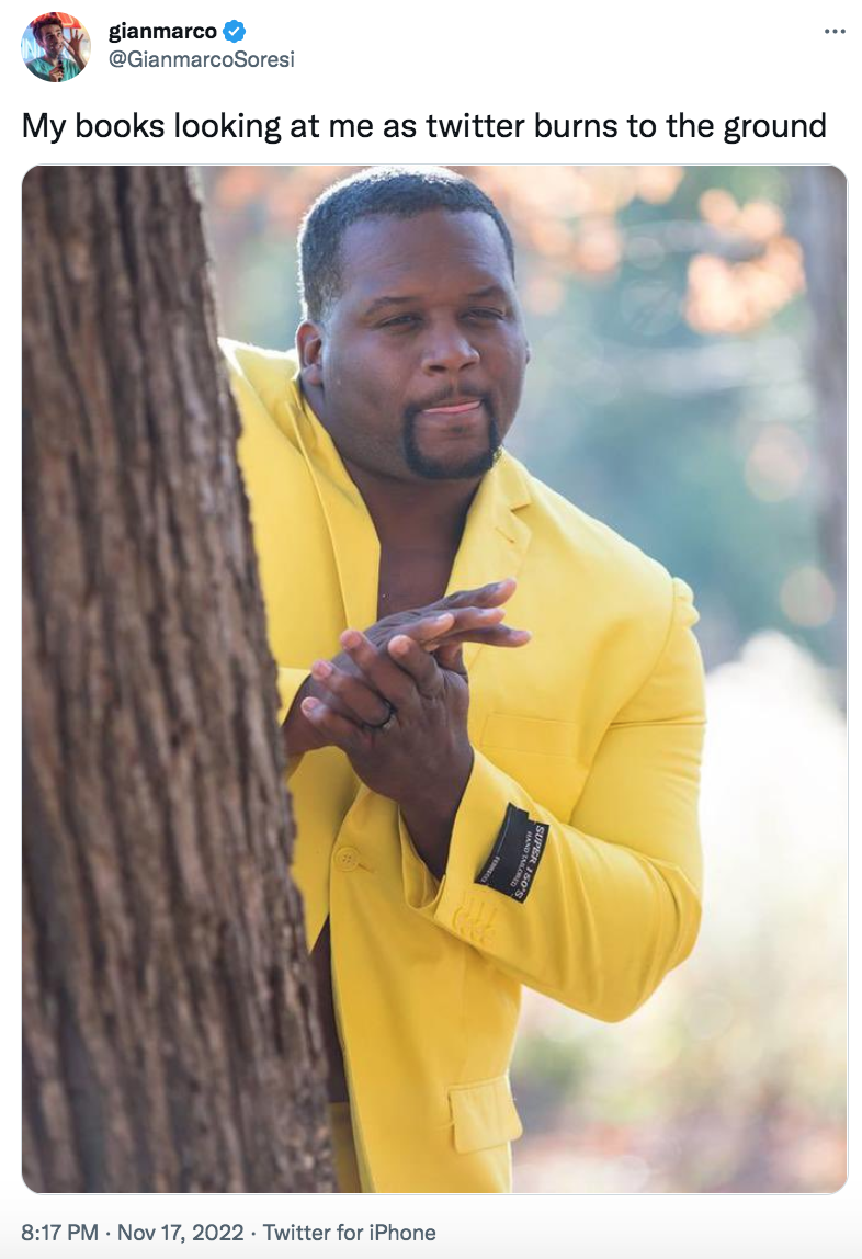 On the upside, this question is engendering a cornucopia of revelrous and subversive content, as users ironically pay tribute to the site while lampooning its new owner Elon Musk — the kingpin of Twitter’s demise, who earlier this week issued an ultimatum to employees to do “extremely hardcore” work or leave. Sensibly, many chose to leave.