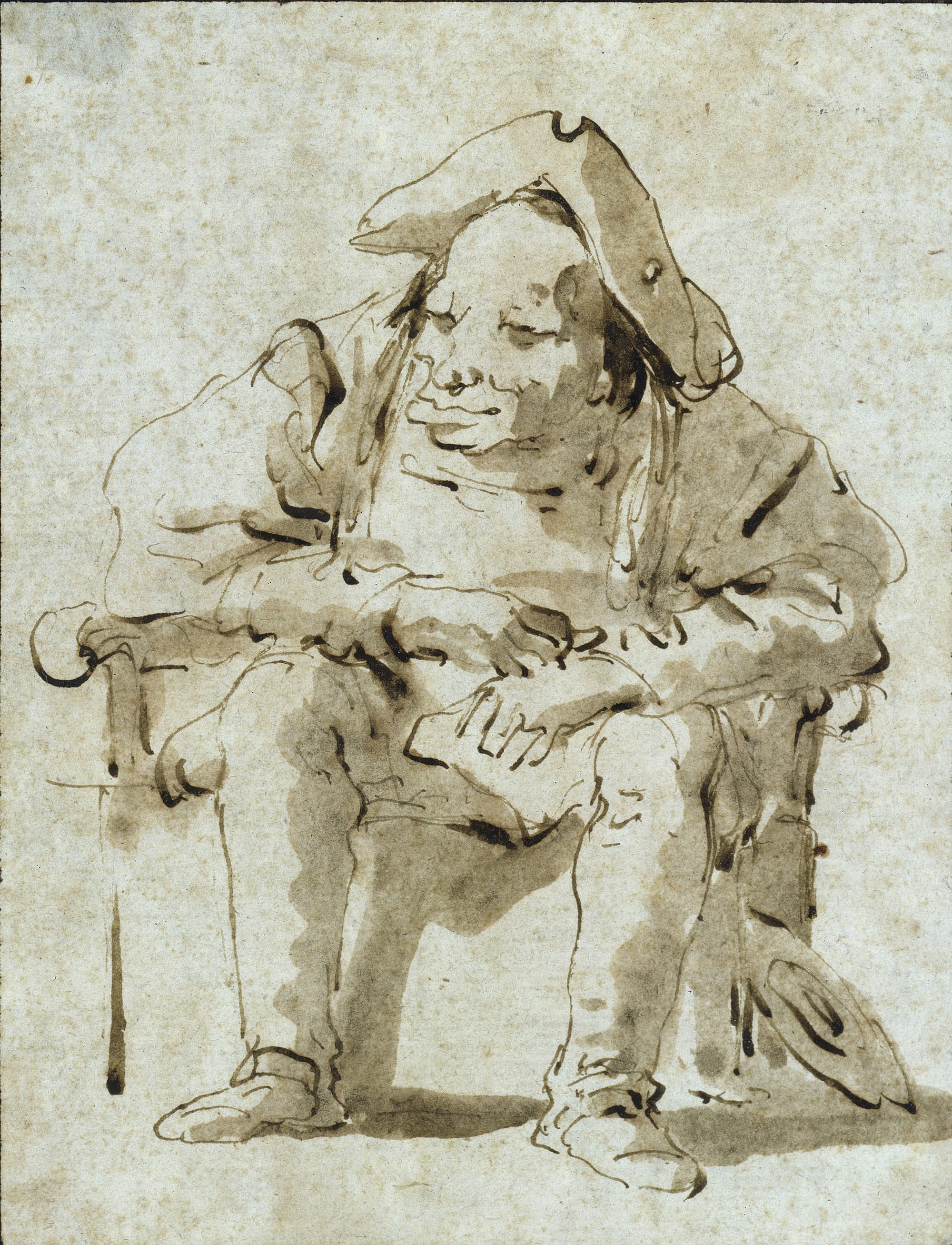 Teipolo worked on commissions for princes and monarchs throughout his career, and many of his works were acts of puffery made for public places. What such high-society folk were never likely to have seen are the etchings that he made to please himself. Gathered in a single room as his Caricatures, Capricci, and Scherzi, they seem in all their strangeness and daring to anticipate Goya. (In fact, there are etchings by Goya on nearby walls as if to prove the line of succession.) Why are this owl (with his huffish back to us), this Magus, this monkey, and this ox in each other’s company? And why is the monkey on a chain?