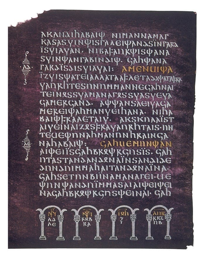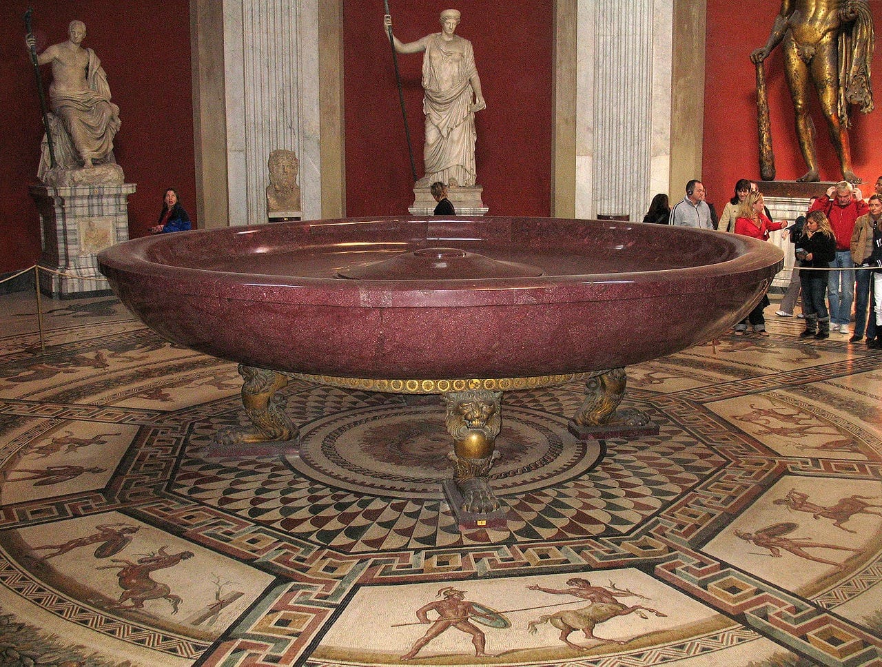 In ancient Greek, purple had a number of names. The noun πορφύρα (porphyra) was frequently used to refer to purple cloth, and is still the root of the name for the purple-hued porphyry stone that Greeks and Romans prized for sculpture, sarcophagi, and even the bath tubs of the ancient world. Our word “purple” is derived from the Latin word purpura, which was often applied to the dye used to turn clothing to a rich blueish-red shade. Unlike today, there was a more profound hierarchy of color that could and did advertise status to others. Purple was one of these aesthetic markers, though there were many shades to choose from.