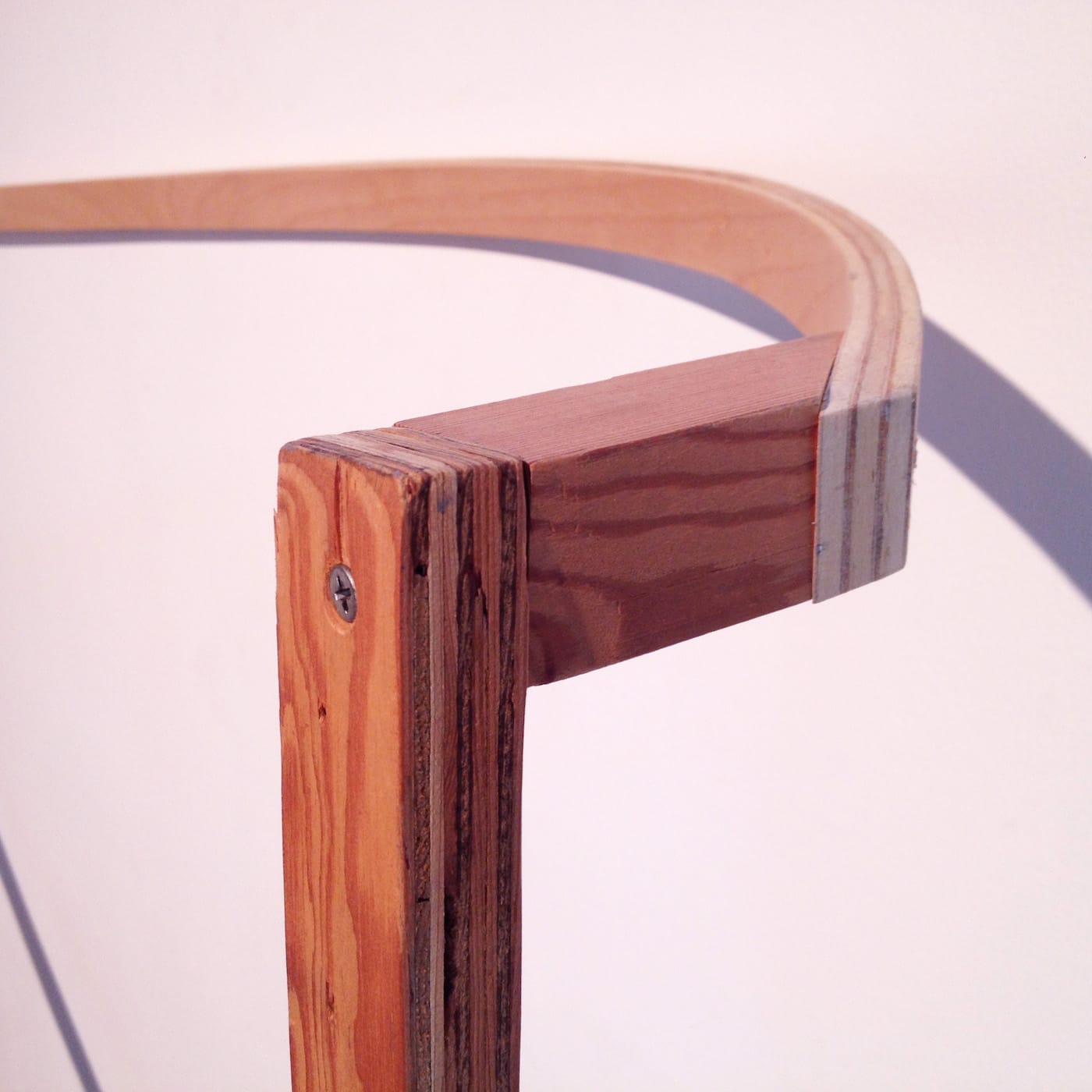Since the early 1970s, Harry Leigh has been producing distinctive, elegant, deceptively simple wall-based sculptures, mainly of wood. Incorporating thin strips or bands of hardwood and bent plywood — and in some cases heavier stock or red bricks — they often frame, bracket, or otherwise ensconce a section of the wall they hang on.