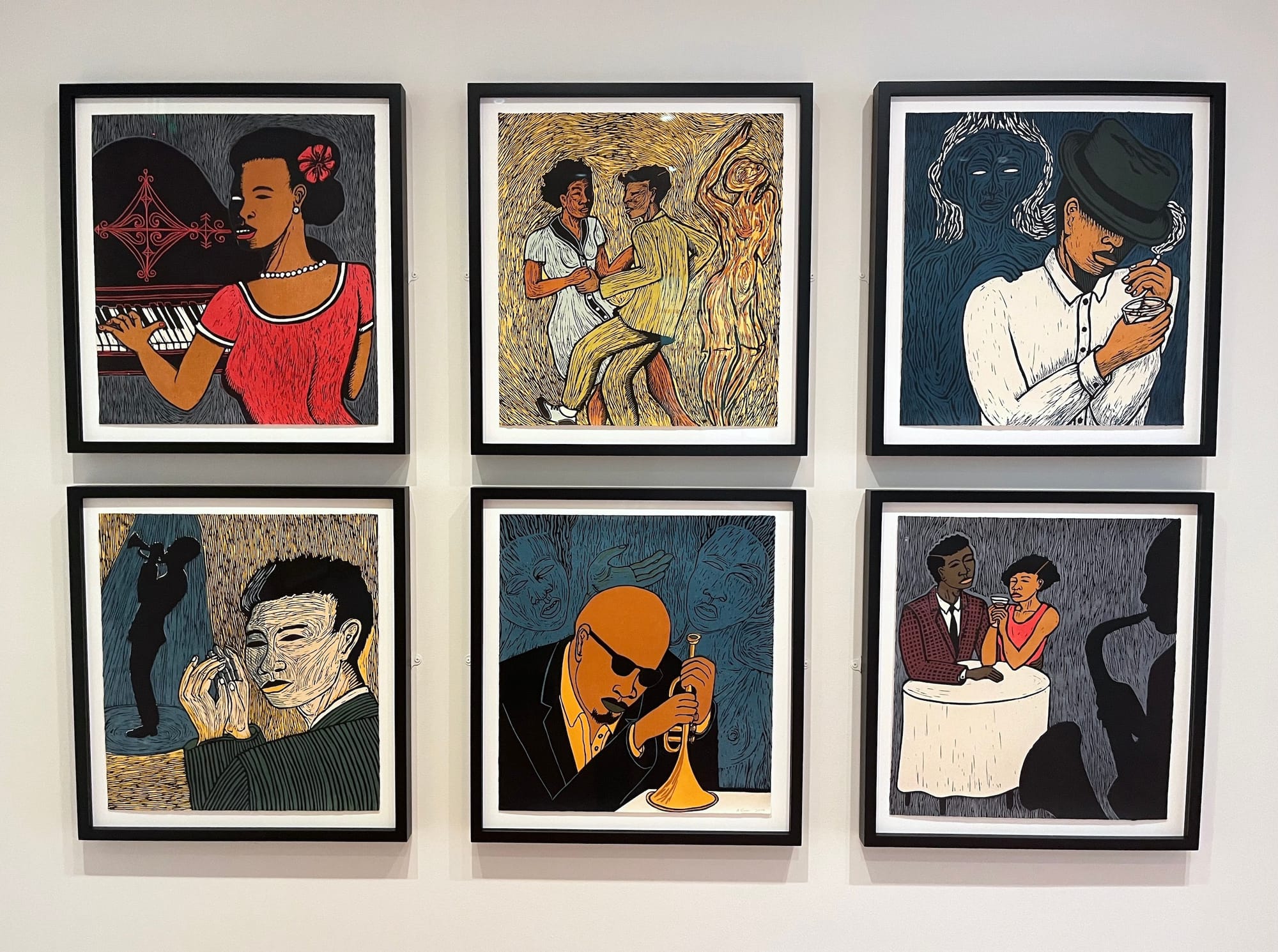 "Finally, in this long trek through 300 years of black life, there was joy, which is what I mostly remember," she writes, going on to comment on the importance of music — dancing, togetherness, tunes, and lyrics — in this history. On the gallery's walls, Saar's collection of vibrant prints portrays community spaces in Harlem, all involving music in some form and speaking to Morrison's written ideas about remembering. Just like in the room featuring depictions of enslaved women, it seems that the work of Morrison and Saar was made for each other, filling in the gaps between writing and visual art.