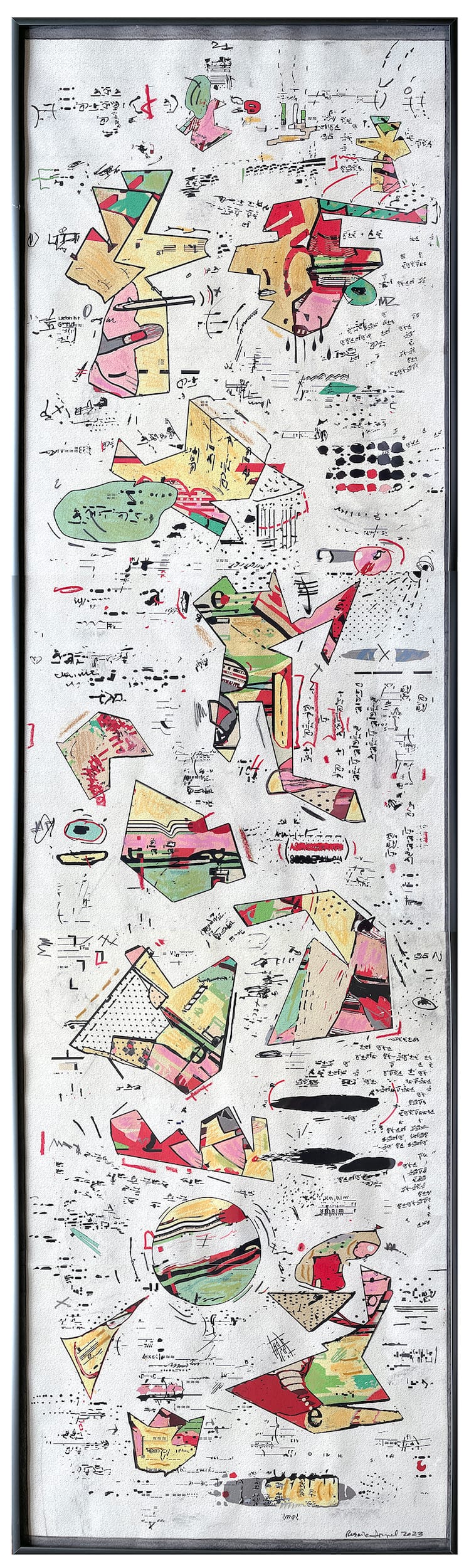 Rosaire Appel: Abstract Comics, her debut show at Steven Harvey Fine Art Projects, presents another side of this artist’s eye-catching work. The six works (five pigment prints with ink and crayon additions and a two-panel laser print on acetate with acrylic backing) are either tall and narrow, like a Chinese ink painting, or short and wide, like a comic strip or scroll painting, but she has no need to develop a signature style as a comic-strip artist does.