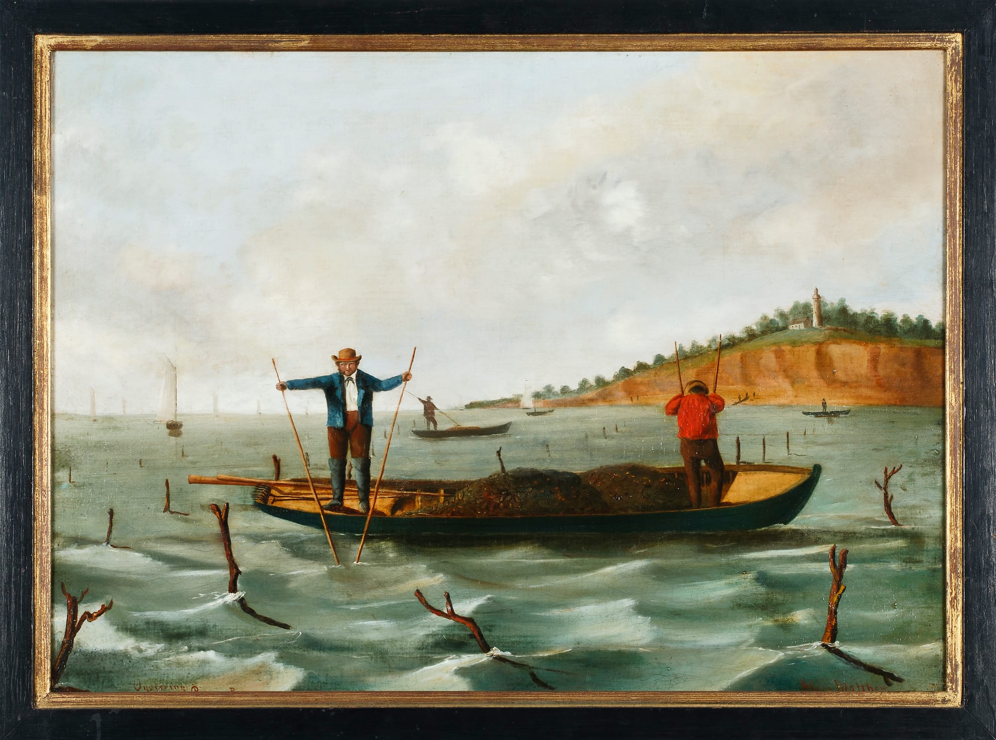 The Hudson River School’s Romantic portrayals of nature have gone in and out of vogue since the group’s mid-19th century heyday, but their legacy has always loomed large. Shifting Shorelines: Art, Industry, and Ecology along the Hudson River, at Columbia University’s Wallach Art Gallery, contends with that legacy by highlighting what it omits. The curatorial team’s gritty selections emphasize the river’s Indigenous, ecological, industrial, and enslavement histories. Walking through the exhibition’s thematic groupings feels like looking at a series of art historical core samples, each of which provides holistic perspective on how artists past and present have depicted the Hudson beyond just idealizing its grandeur.