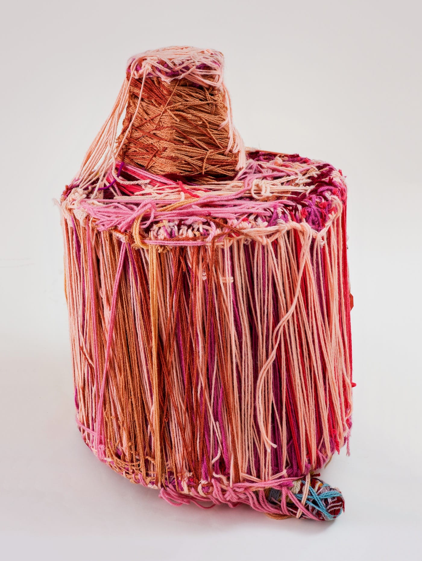 The exhibition opens with five of Judith Scott’s 1990s untitled abstract fiber sculptures wrapped in yarn, rope, and string. The wall text promptly alerts visitors she is an outlier because she was deaf, had Down Syndrome, and grew up in an institution where she remained for 35 years.