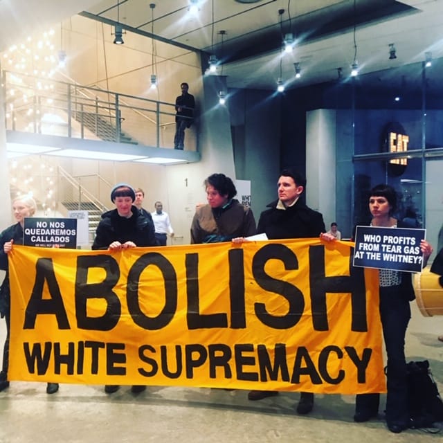 “Fuck your post-modernism,” a protester yelled in the lobby of the Whitney Museum on Friday night. It was a critique not only of the art in the museum’s recent Andy Warhol exhibit, but of how it was funded, with money from the Whitney’s Vice-Chair Warren B. Kanders, CEO of Safariland a defense weapons manufacturer whose tear gas was used at Standing Rock, on the US-Mexico border last summer, and just recently against Palestinians in Gaza.
