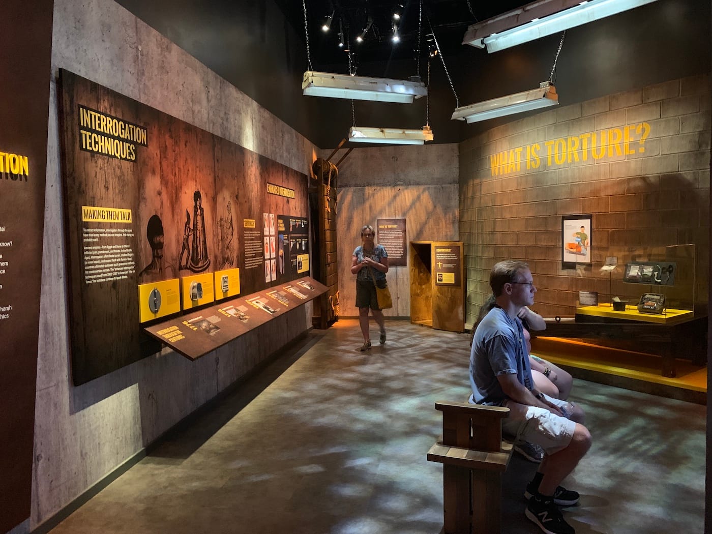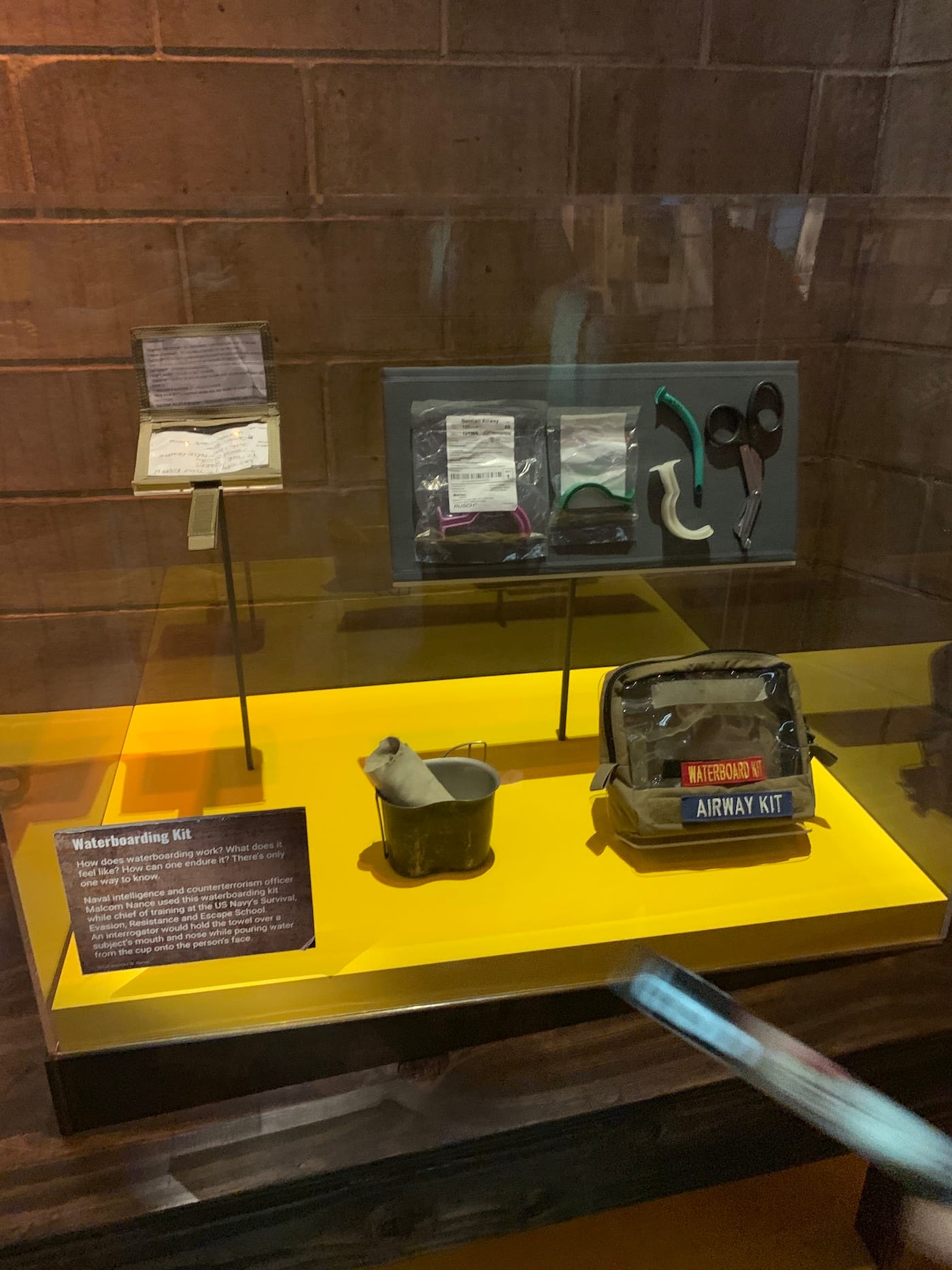 Having worked directly with Guantanamo detainees who have experienced torture, Prasow found the installation disconcerting and factually incorrect. First off, the display’s uses the terms torture and interrogation interchangeably, especially in texts that are actually discussing the former. Secondly, the exhibit’s language suggests that torture might be an effective tool, but there is no evidence that it produces valuable intelligence.