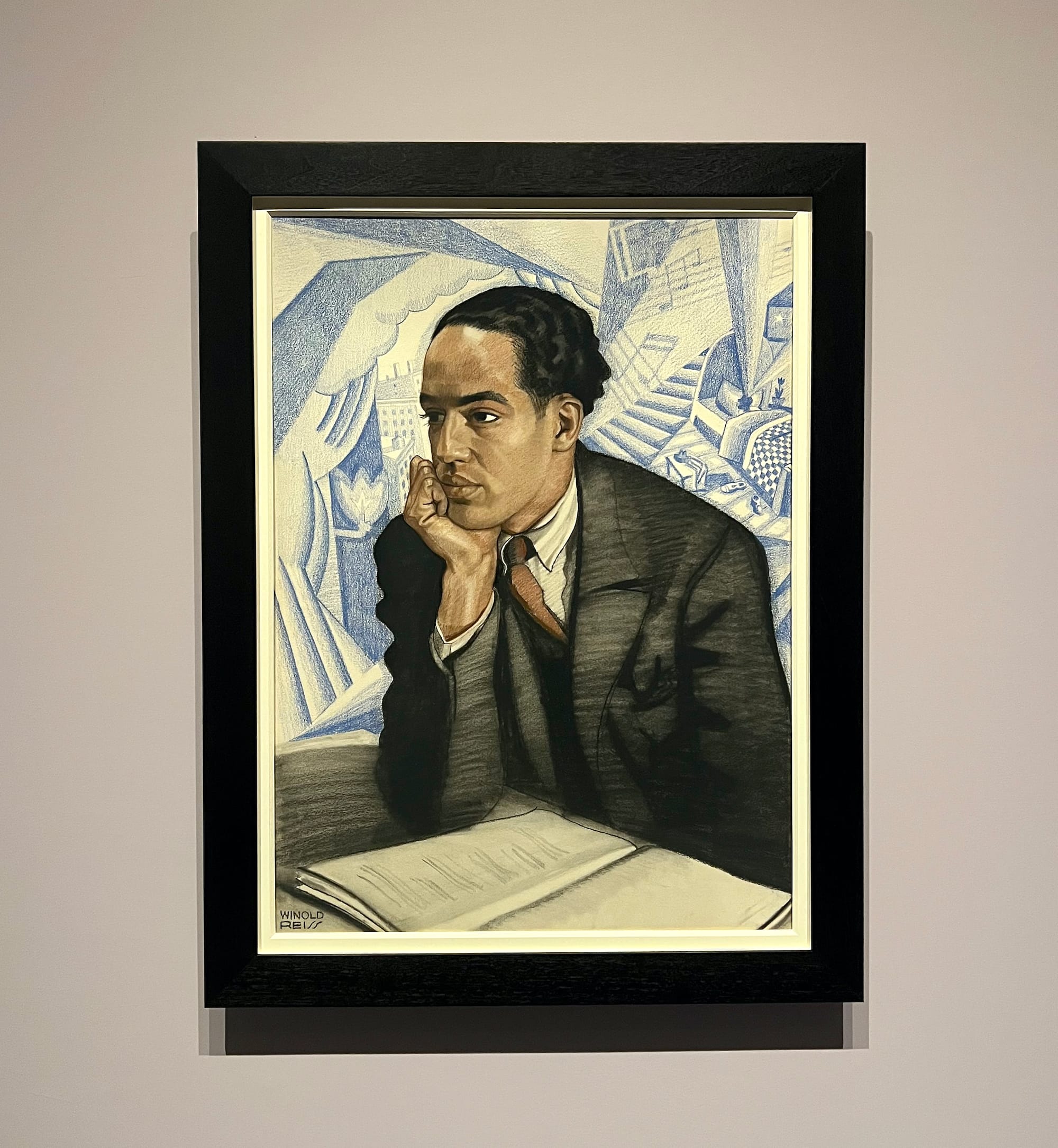 From the start, the exhibition engages with these questions, through an introduction to the movement’s leading thinkers and writers. It opens with twinned portraits of Alain Locke and Langston Hughes — both of whom are often named among the most important Harlem Renaissance thinkers. Notably, the portraits were rendered by the German-born artist Winold Reiss, whose recurring presence in the galleries attests to the multi-national and multi-racial history of the Harlem Renaissance. The portraits faces a vitrine of books penned by authors including Hughes and Locke themselves, Zora Neale Hurston, and James Weldon Johnson. This sensitivity to the textual pervades the exhibition, and almost every gallery contains similar vitrines that testify to the rich literary layers of the period.