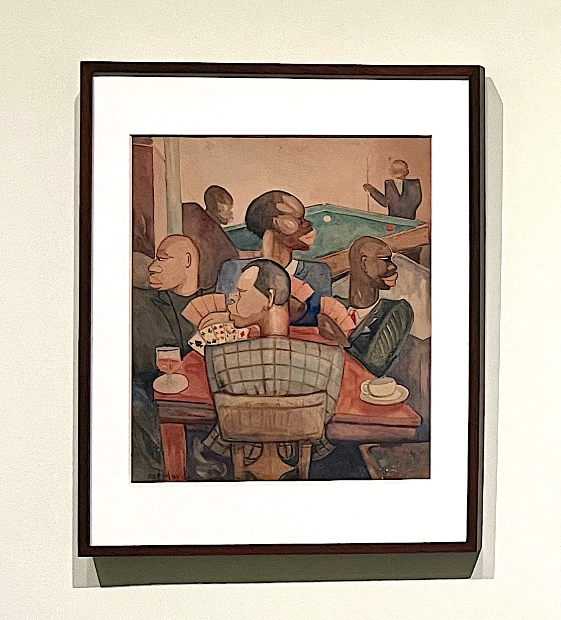 Also foregrounded are the negotiations of class and respectability politics that surfaced in everyday life and in discussions among in writers like Hughes, Du Bois, and George Schuyler. For example, a James Van Der Zee photograph of an elegant tea salon at millionaire Madam C.J. Walker’s apartment hang next to Palmer Hayden’s painting “Nous Quatre à Paris,” which once drew ire for what some thought was an embrace of base anti-Black stereotypes — the men in this painting are pictured drinking and playing pool, and have exaggeratedly thick lips and wide noses. In this juxtaposition, we see a war in images, a fraught contest over how Black people would represent themselves after centuries of external definition. This war remains alive and well in today’s post-Obama age, when many are still attached to the aspiration of “Black faces in high places”: we are still (unfortunately) burdened with the question of representation, and many are still (unfortunately) anxious about images of Blackness that — like Hayden’s — don’t appeal to respectability politics.
