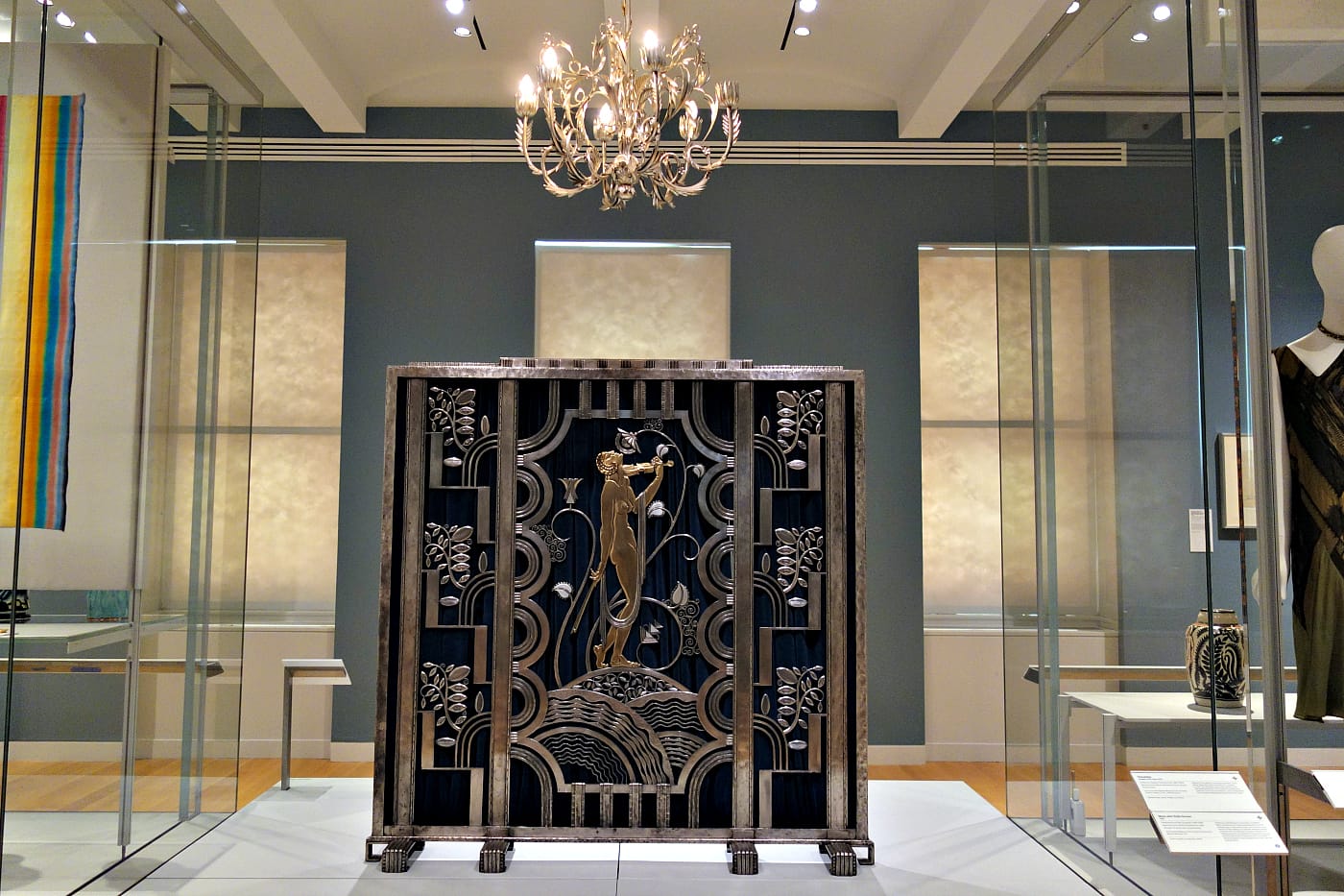 “It’s in those conversations where we hope that people can see if we put a beige and gray Jean Dunand enamel vase next to a similarly colored dress that it shows that these colors are the palette of the era,” Coffin said. “You start seeing connections, like an Edgar Brandt screen influencing the Rose Iron Works of Cleveland. It all keeps bouncing back and forth.”