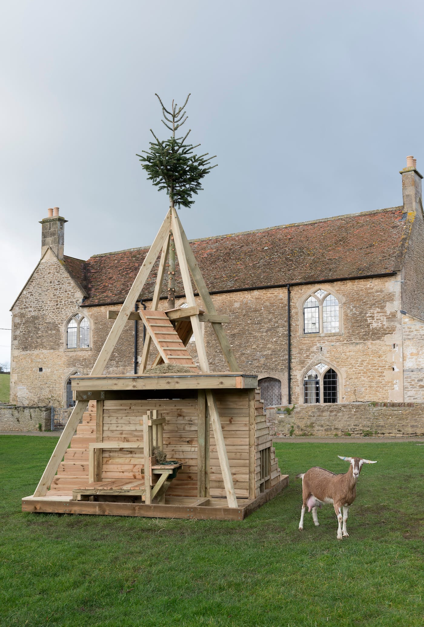 But I wouldn’t exactly conflate the modest rustic charms of Bruton with what the blue-chip gallery has done with its renovations on Durslade Farms, the site of its countryside outpost, which opened in 2014. A meticulous, rural-chic makeover has transformed this dilapidated farm into exactly what you would expect from a well-endowed commercial gallery: exclusive VIP lodgings, a Michelin-rated restaurant, and a piggery. (Okay, that last one is a little unexpected.) Undeniably beautiful, the farm’s focus on luxury frills does somewhat chafe against its more rugged setting. Smartly, the gallery’s latest exhibition investigates that contradiction between our idealized expectations of the countryside and the historic realities of rural living.