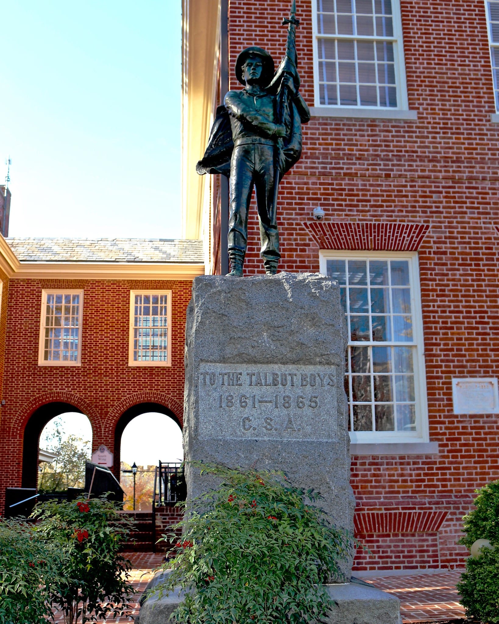 While Maryland was part of the Union in the Civil War, many of its counties were divided, including Talbot County. There, family members found themselves fighting each other in battle. Although three times as many fought for the Union as for the Confederacy in the county, a promised Union monument to accompany the Confederate one was never realized. As such, Talbot County is often misremembered as a Confederate bastion in the state. A statue of abolitionist Frederick Douglass, who was born just 12 miles away, does stand on the lawn, though it was only erected in 2011 after a long fight.