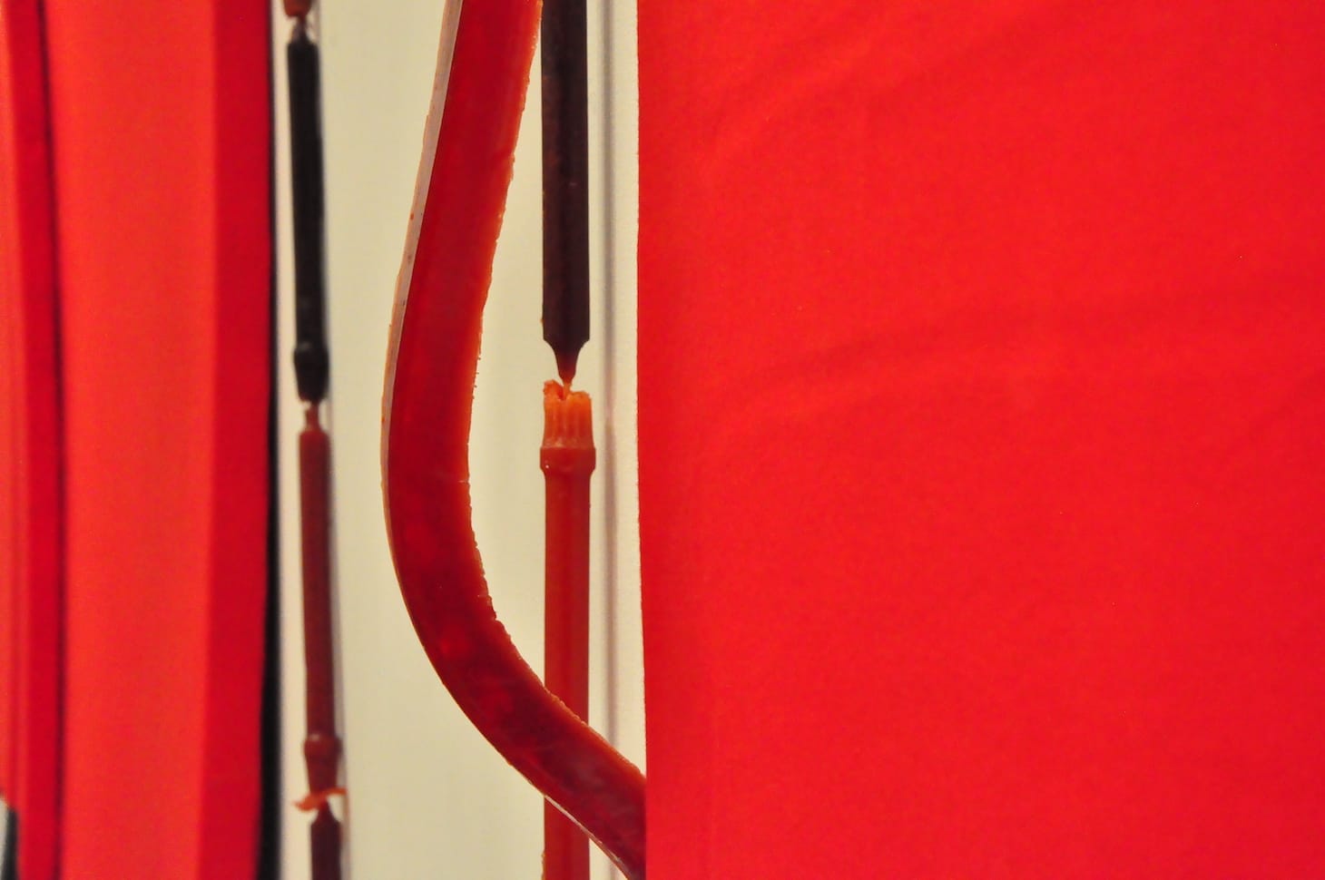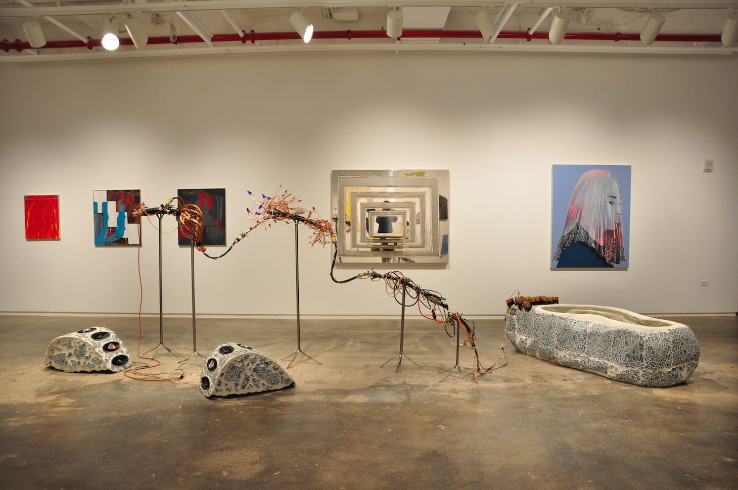 Looking to shake up the traditional mash-up of graduate thesis shows, curator Nicole Kaack sought to arrange the pieces in a way that seemed like they fit together. “Curating a thesis show is a very difficult thing,” she said. “Everyone comes in with such diverse projects that they’ve been working on for years. You can’t necessarily pull a theme out of that.”