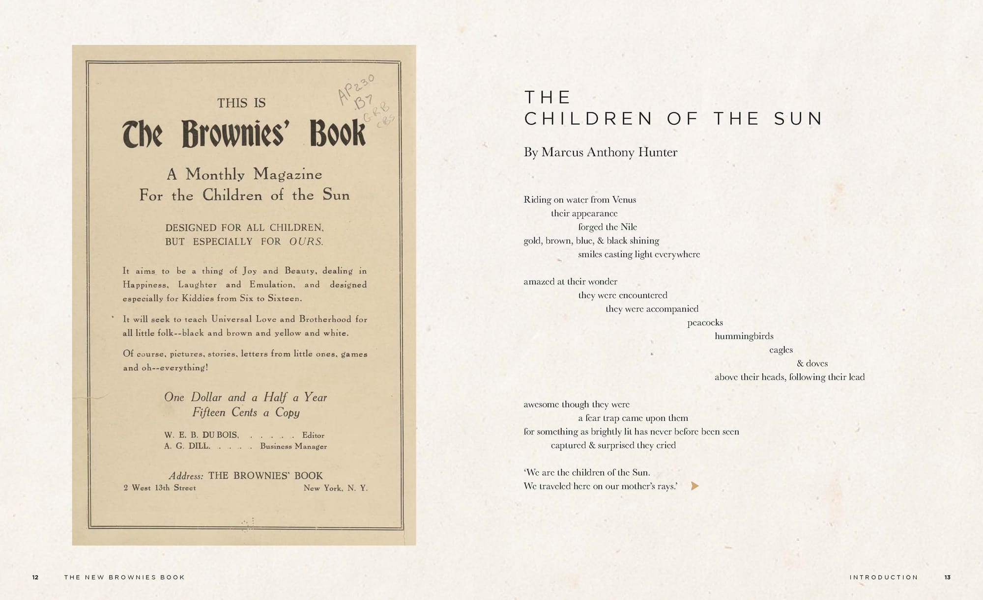 The book beautifully juxtaposes contemporary art and poetry with Black history in the US and abroad, including the impact of the original Brownies' Book. Historic images of African-American youth and snippets of the old black-and-white periodical blend and contrast with full-color imagery, vivid poetry, and storytelling that tackles modern-day issues, such as the COVID-19 pandemic and the ongoing state-sanctioned violence toward people of color in the US.