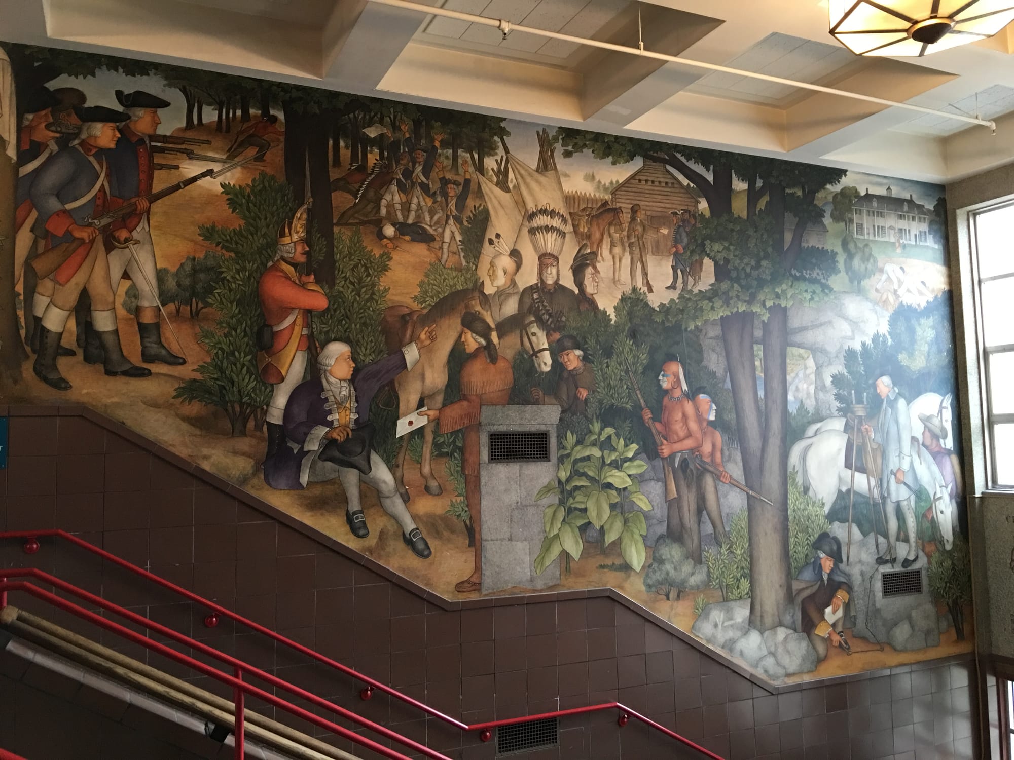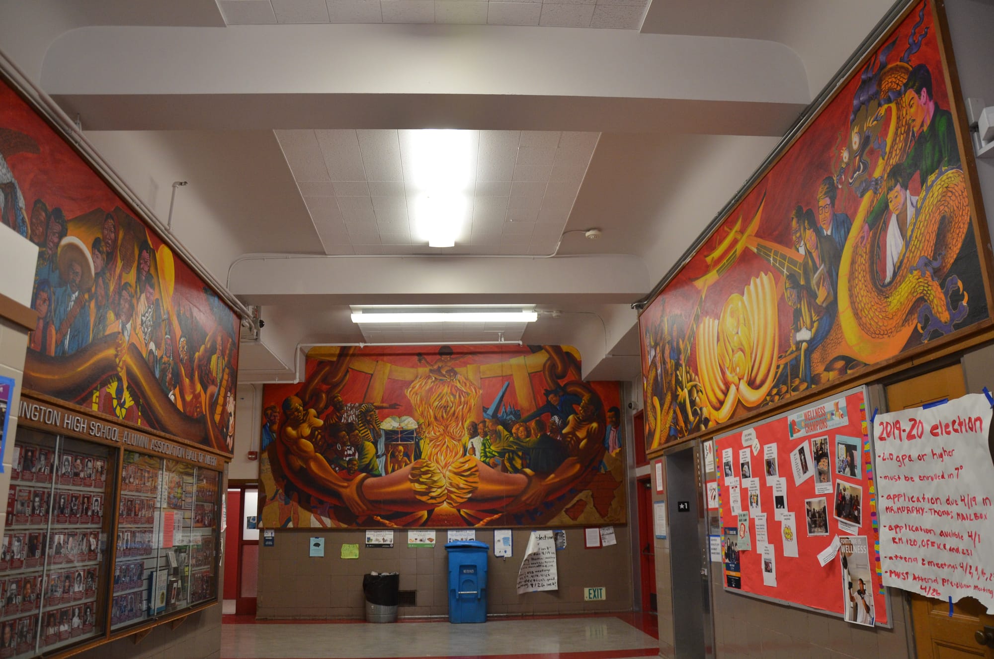 Update 8/14/19 1:10pm: | The San Francisco Board of Education voted on Tuesday night to conceal, but not destroy, “The Life of George Washington” mural at George Washington High School. The 4-to-3 vote came after more than a month of intense debating between students, parents, faculty, alumni, city officials, and the public. Some had complained that an earlier vote to paint over the murals qualified as extreme censorship; others said that the murals posed an undue burden on Native American and African American students attending the school who went out of their way to avoid the paintings. Neither side of the argument was completely satisfied with the close vote.