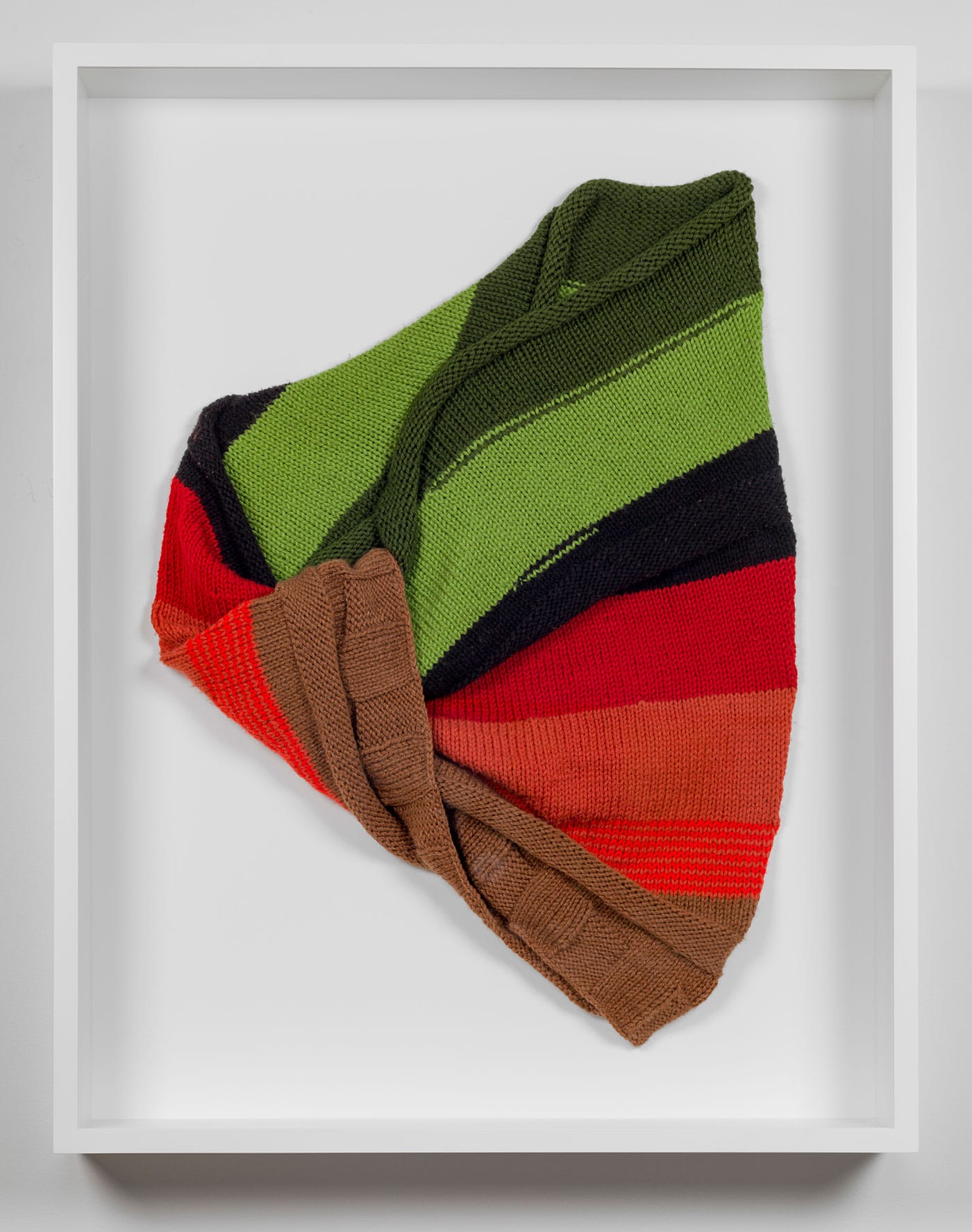 As I listened to “Minute By Minute,” it hit me: One Michael from Ferguson gets to live a long life; the other did not. I could embody both, and “It Keeps You Runnin’” was my song. I hooded Alteronce Gumby with a knitted color study, activating simultaneous contrast with the painting behind him. He grooved to the song as I lip-synced the lead vocals. The green of the painting became a screen for video from an Al Jazeera news broadcast of Ferguson demonstrators, mourners, and militarized police.