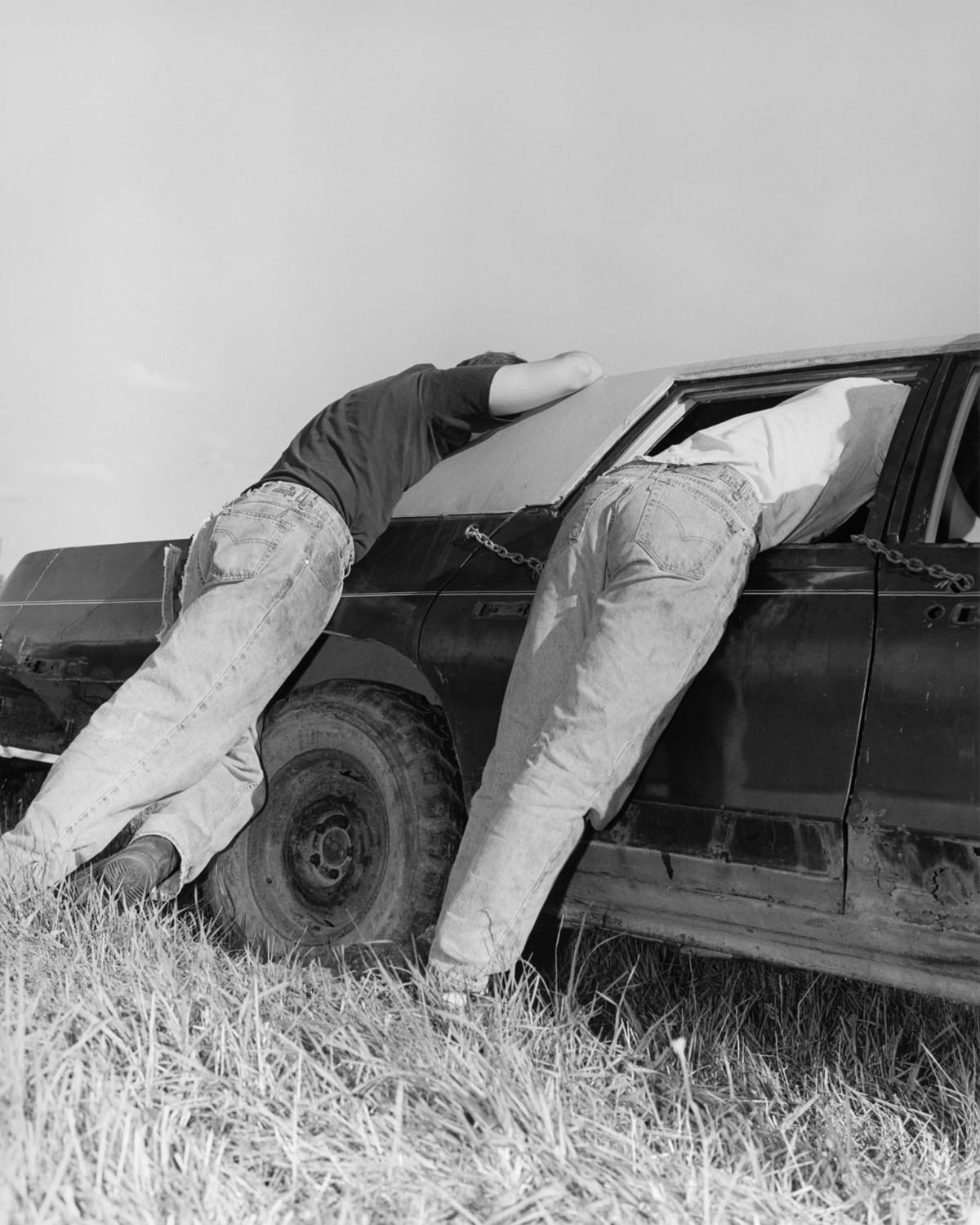 In Derby (TBW Books, 2021), the late Ken Graves and his wife and photographic partner Eva Lipman reveal the little-seen world of competitive demolition derbies. Graves and Lipman’s black and white photos depict the events’ hardscrabble drivers and mangled cars, but avoid the dangerous crashes that derbies are known for. Instead, in lyrical compositions and rich tones, the series exposes the surprisingly tender and at times erotically charged moments that happen before and after impact, when human and machine bodies come into close contact.