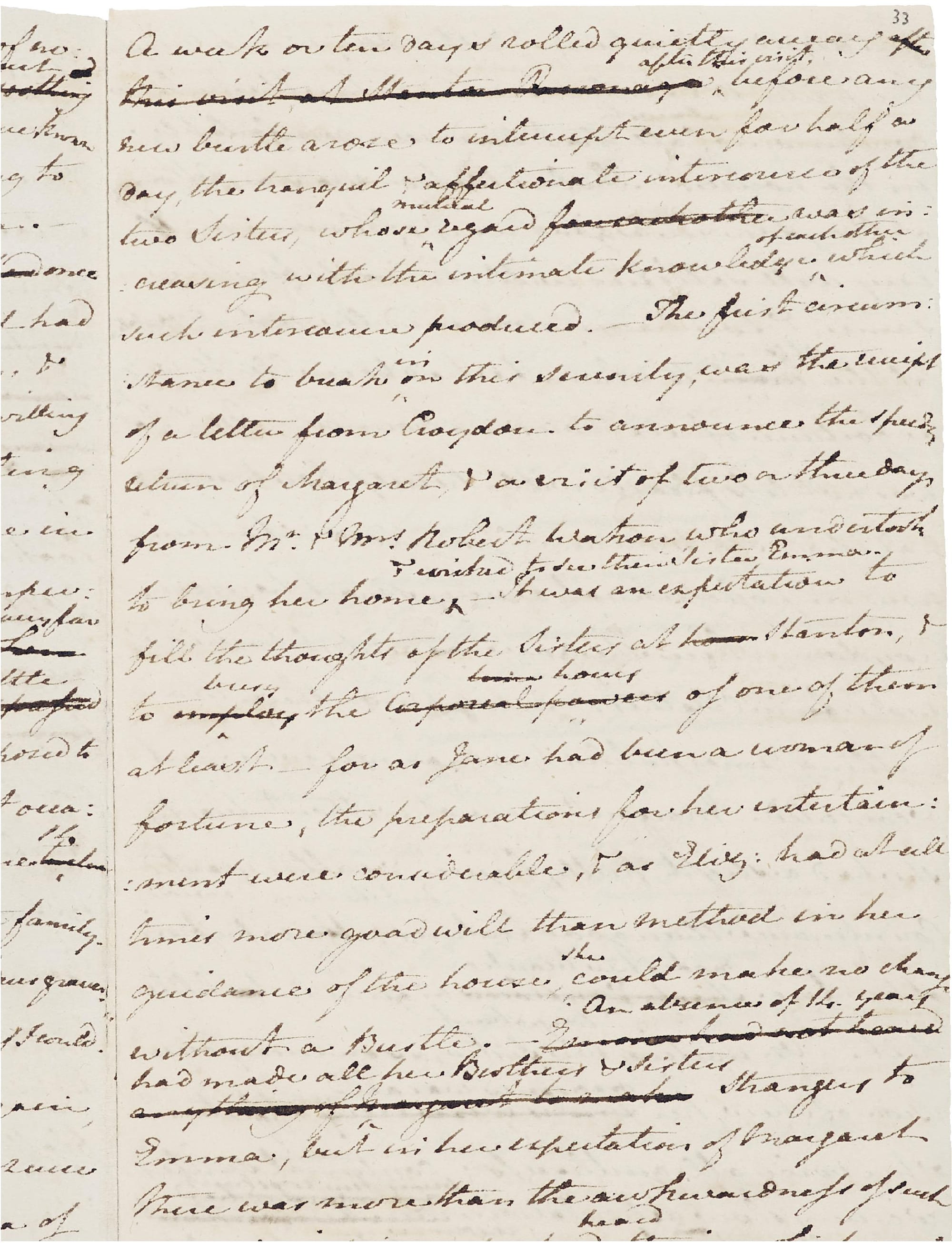 For example, Handwritten includes reproductions of excerpts of "Volume the First," a collection of short works Jane Austen wrote by hand beginning around age 11 and consolidated into a single notebook in 1793. These pages, despite their strike-through revisions and spelling errors, demonstrate a refinement of penmanship that feels par for the course for a lady of her milieu.