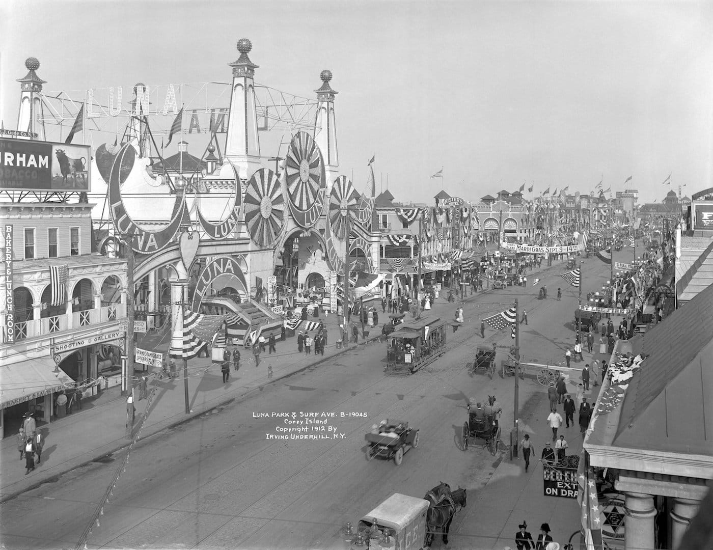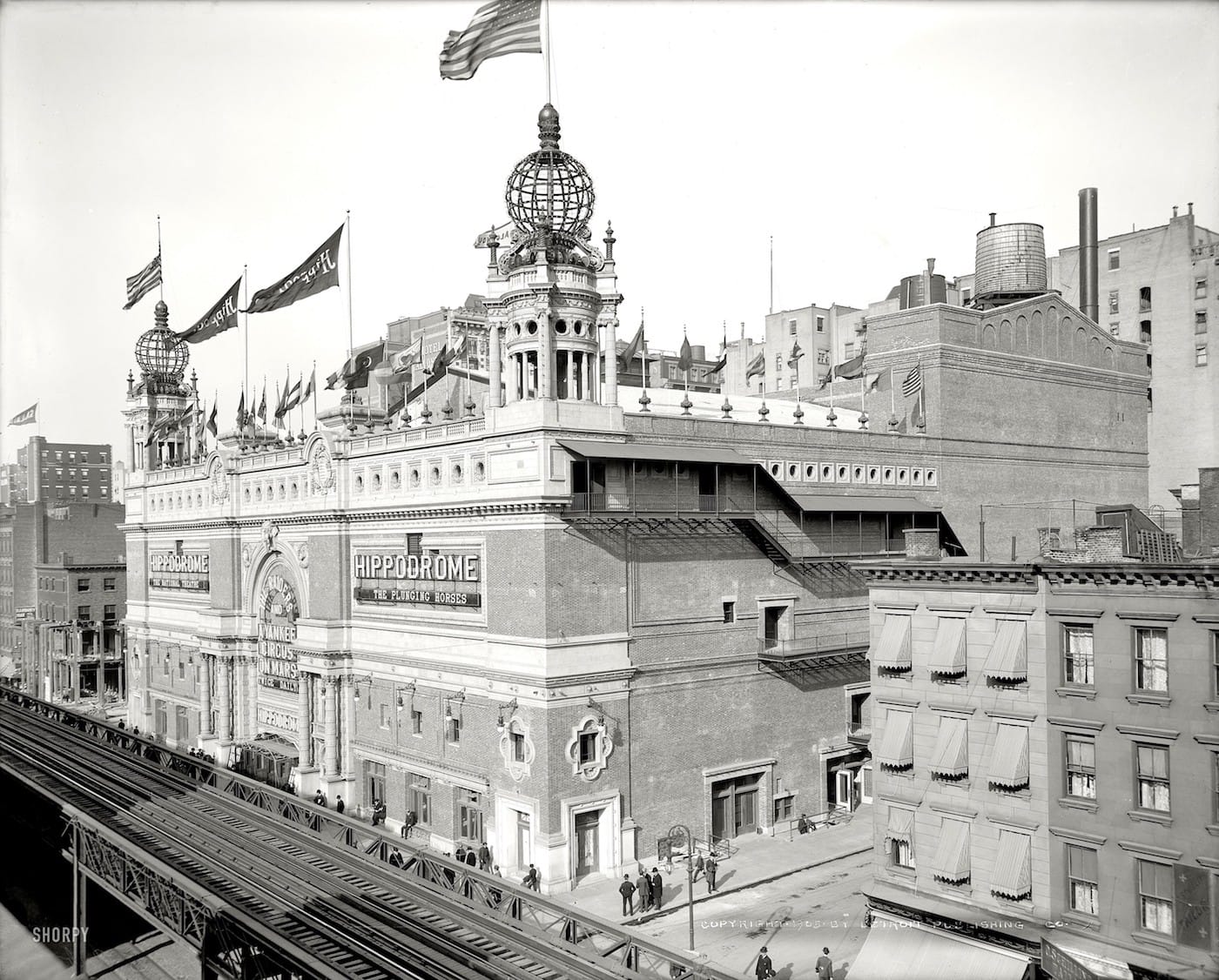 Along with the appearance of electric lights and underground public transportation in the growing city, was after-hours entertainment amid its illuminated streets for both the thriving newly rich and the lower classes, often living in overcrowded tenements. In fact, one of the spectacles at Coney Island’s Dreamland was a real tenement fire you could witness, complete with live firefighters. The beach-front “Sodom by the Sea,” an easy jaunt on the train, had live animals, thrill rides, and “freak shows” accessible to the masses. For the wealthy, the important entertainment was in Manhattan, with a theater district that continued to migrate uptown.
