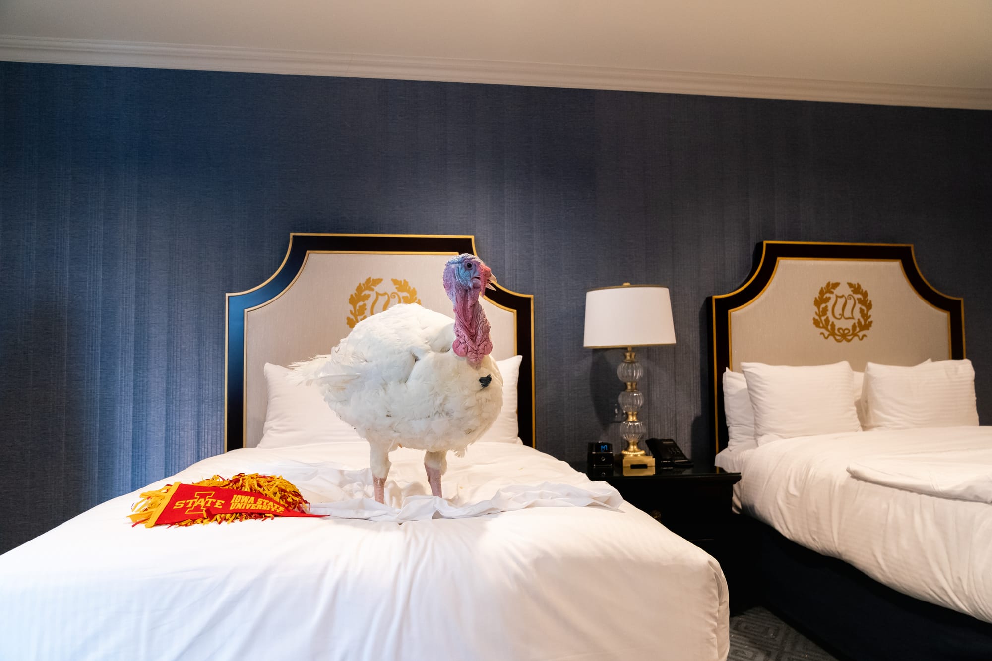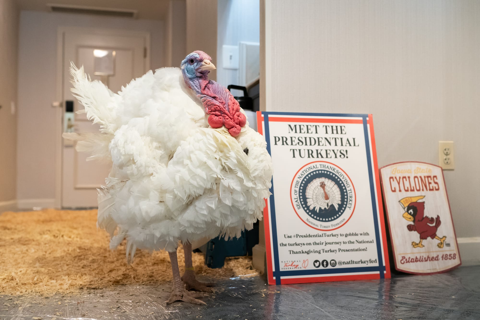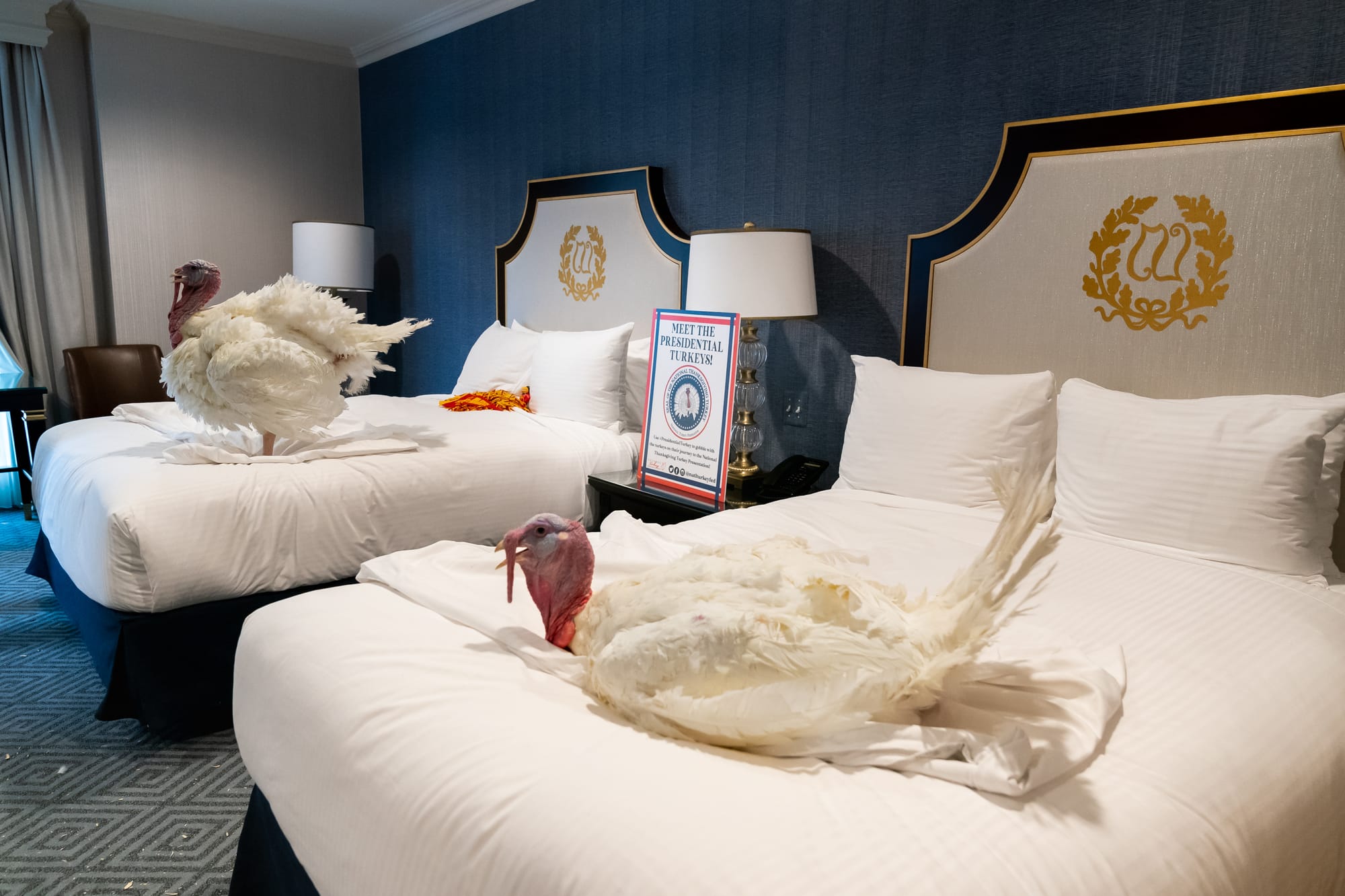 The two turkeys for this year's White House Turkey Pardoning are currently living it up in Washington, DC. After landing from Iowa on Sunday, November 22, the finalists were welcomed in a red carpet reception and hosted in a five-star suite at the Willard Hotel, where they're basking in luxury before one of them will be pardoned by Donald Trump at the traditional White House ceremony tomorrow.