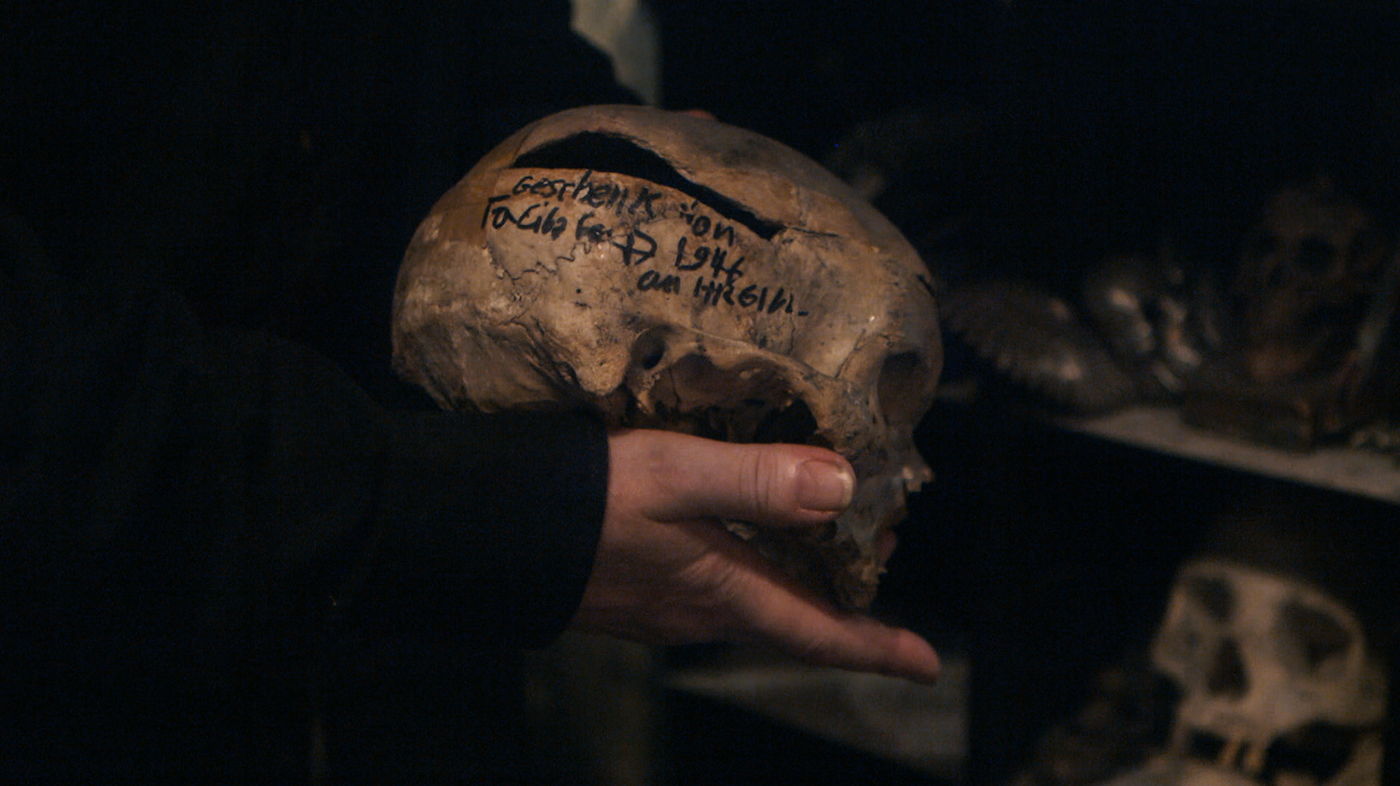 Though some viewers might only know Giger from Alien, the Xenomorph creature design is fairly typical of the macabre, humanoid figures he created from his earliest work in the late 1960s to his death in 2014. In Dark Star, curator Andreas J. Hirsch observes how the painter entwines birth, sex, and death on canvas; the description is apt for the Xenomorph, born as a larva bursting through a human chest. The director selects the perfect pieces for illustrating this point, showcasing Giger’s paintings of deformed babies, vaginal penetration, and the memento mori of exposed skeletal structures in lingering takes. In a particularly eye-opening montage earlier in the film, the anxieties referenced in Giger’s nightmare characters come to the forefront. Stock footage of an atomic bomb exploding abruptly cuts to a stylized female face with a head shaped like a mushroom cloud, her long neck mirroring the stem of the blast. A vintage photograph of a soldier demonstrating rifle use to a squadron of children yields to a painting of several small, identical humanoids trapped in the clip and chamber of a handgun. Sallin skillfully shows this horrific fantasy as disturbingly close to reality, lending Giger’s work a relevance that its gruesome nature might otherwise overshadow.