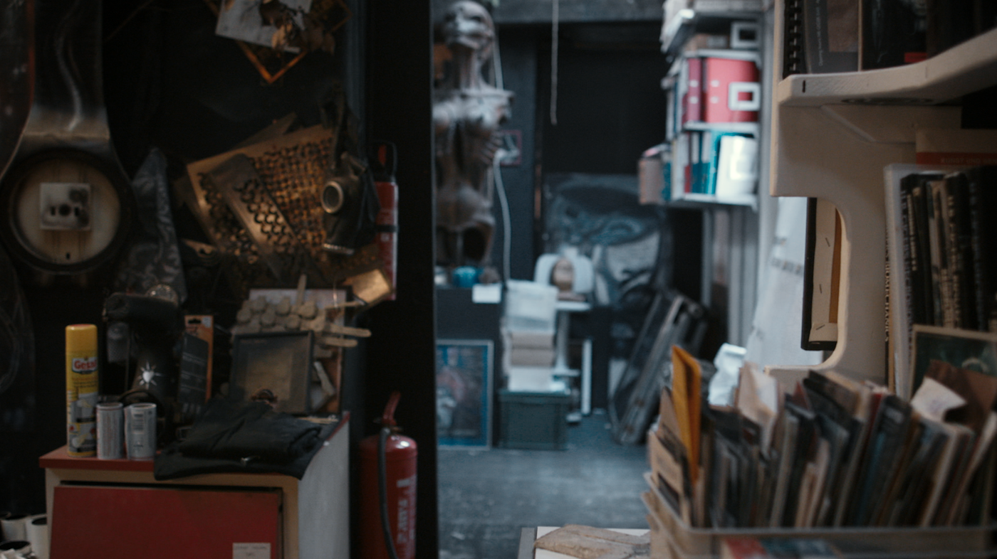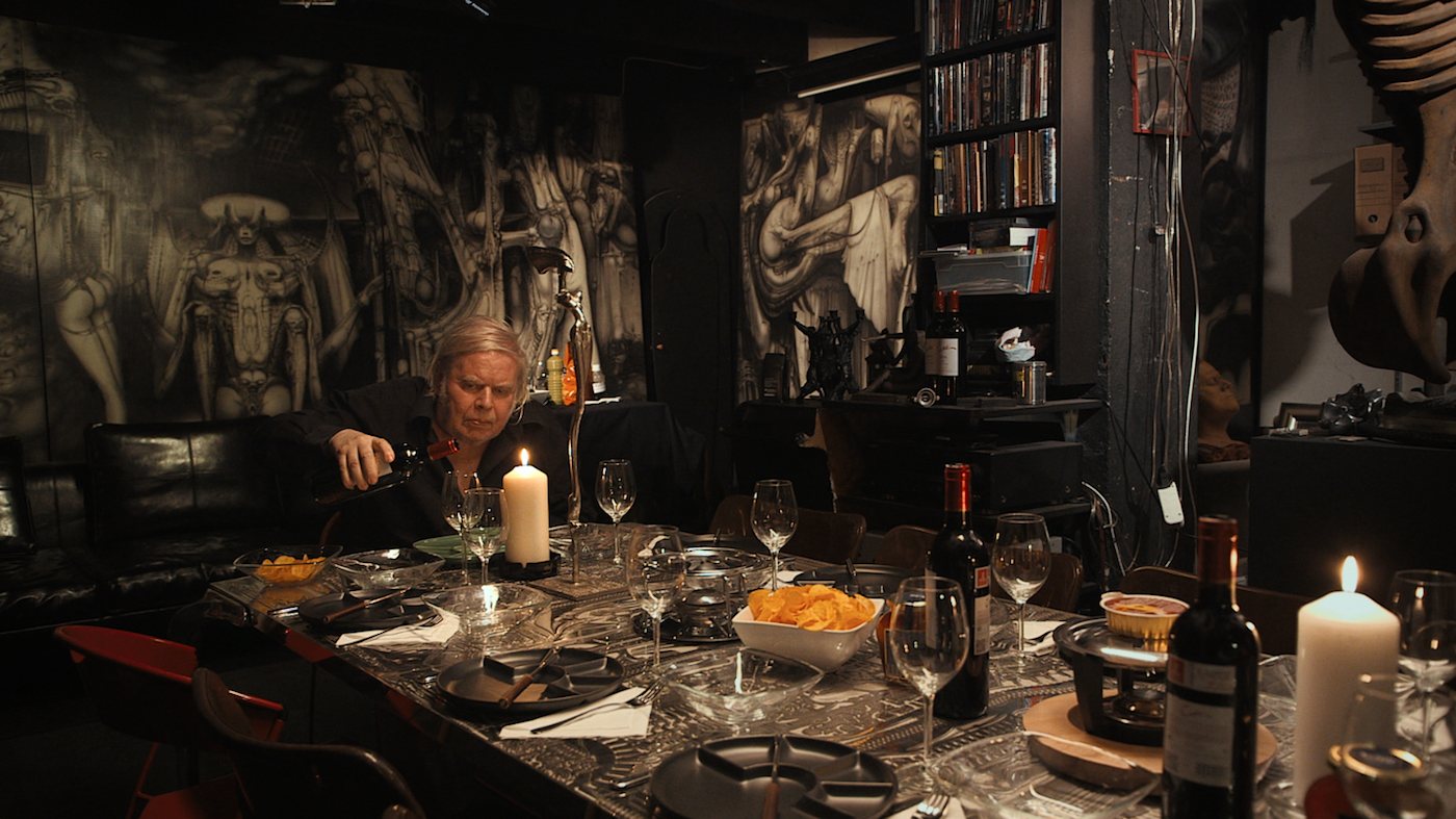 Sallin gives a more wholesome picture when she focuses on Giger’s extended community. A network of family, assistants, and collaborators are a constant presence, calling him by the more intimate moniker “Hans Ruedi.” The documentary is at its best when it draws from the commentary of those who filled multiple roles in the artist’s life. Metal musician Thomas Gabriel Fischer was a devout fan of Giger’s art book Necronomicon and eventually became his assistant. Giger’s mother-in-law processes royalty payments from 20th Century Fox for Alien. Lovers past and present take an active part in scheduling and press duties; they also have some of the best stories, with former partner Sandra Beretta recounting a time that a door in their home was blocked by the remains of a lion whose spine was meant for a piece. As each of these individuals appears onscreen for the first time, Sallin waits several beats longer than most documentaries would wait to share their names, suggesting the difficulty of summarizing the many roles each person played in his life. Just as Giger’s work sits at a crossroads of biological themes, his relationships also occupy several spheres at once.