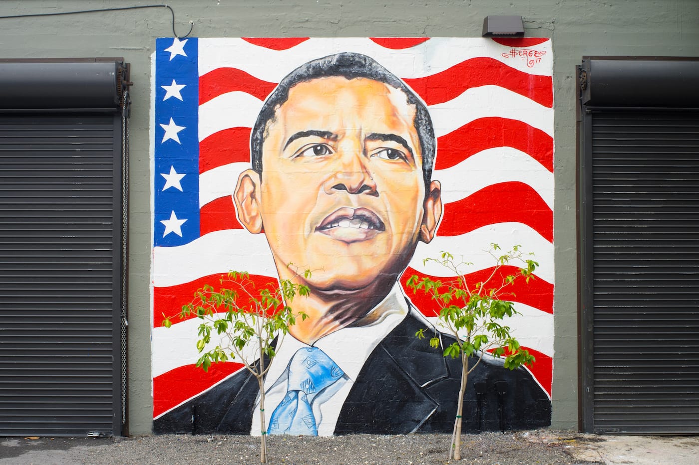 In his paintings of Little Haiti street scenes, Eddie Arroyo, too, addresses the city’s changing face; they seem to be made en plein air, neutral documentations with titles referring only to their location (“6116 NW 6th Ave, Miami FL 33127”). However, in painting traditionally black or Hispanic neighborhoods plastered with advertisements and construction cranes, Arroyo, like a Highwayman, might have the posture of an observer, but what he sees is not without socioeconomic and racial implications — and therein lies their strength. Still poignant are the collaborative works of Serge Toussaint, Little Haiti’s most recognizable muralist, and Michael Loveland, which combine Loveland’s abstract sculptures with Toussaint’s signature imagery: primary-colored, cartoonish, and visually synonymous with the neighborhood. At the gallery’s exterior, Toussaint has repainted his mural of President Barack Obama, which once graced nearby 54th Street.