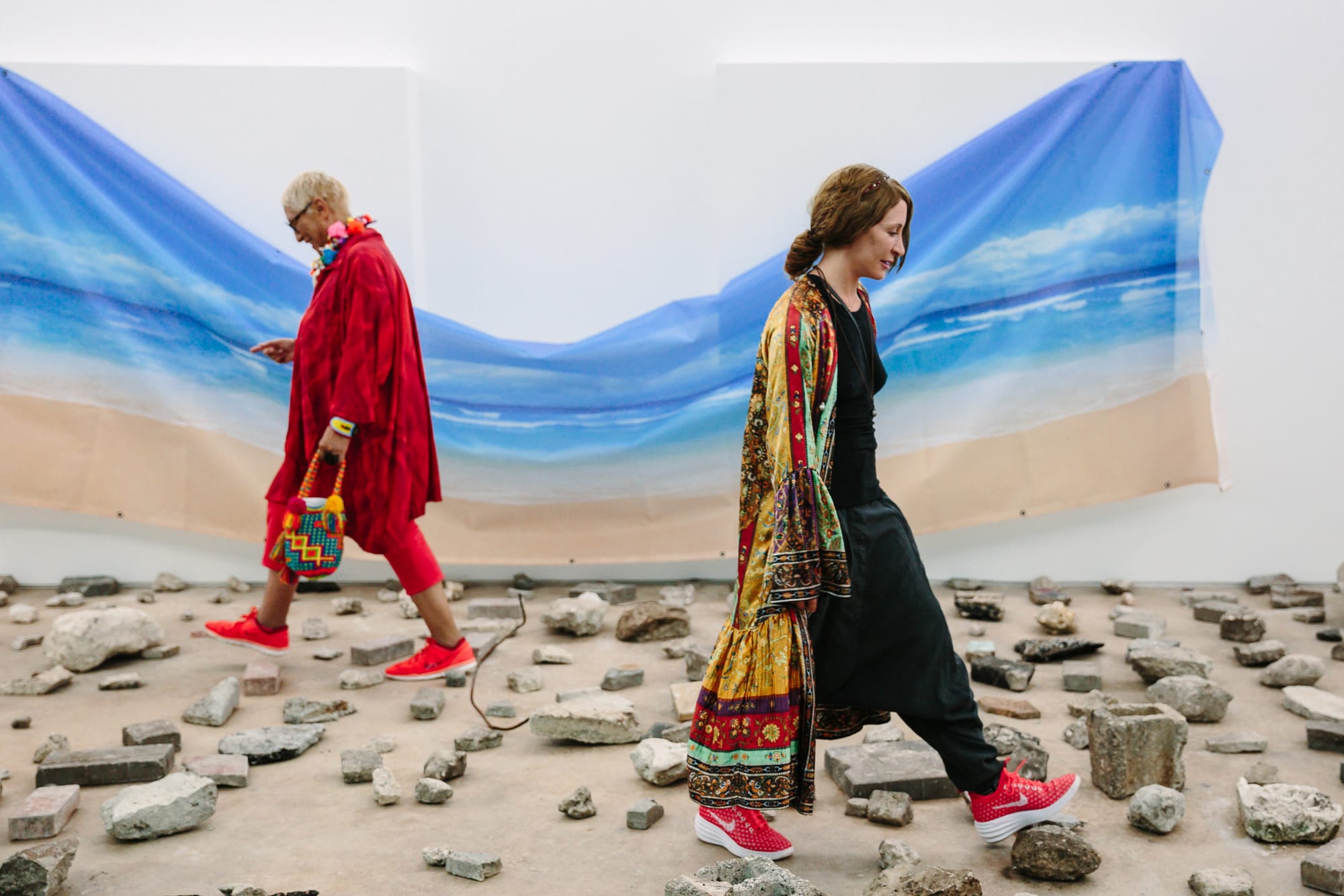 Like a womb, Miami is fluid and cyclical, and it transforms abruptly; Oliver Sanchez’s “My Mermaid Has Legs” (2017), which displays the molds used to restore a stone mermaid, has its own mythos. Sanchez and artist Kenny Scharf, recalling the mermaid’s former life — she once graced the façade of a now-defunct South Beach hotel — found and restored her, investigating her history with the help of old photographs and Miami fabricators. The mermaid (likely the Greek goddess Rhodes) now lives on the exterior of the Hermés store in the relatively new luxury Design District. As Sanchez explains in an accompanying text, Hermés is Rhodes’s “mythological partner … protector of eloquence and wealth. What better suitor to take my mermaid?”