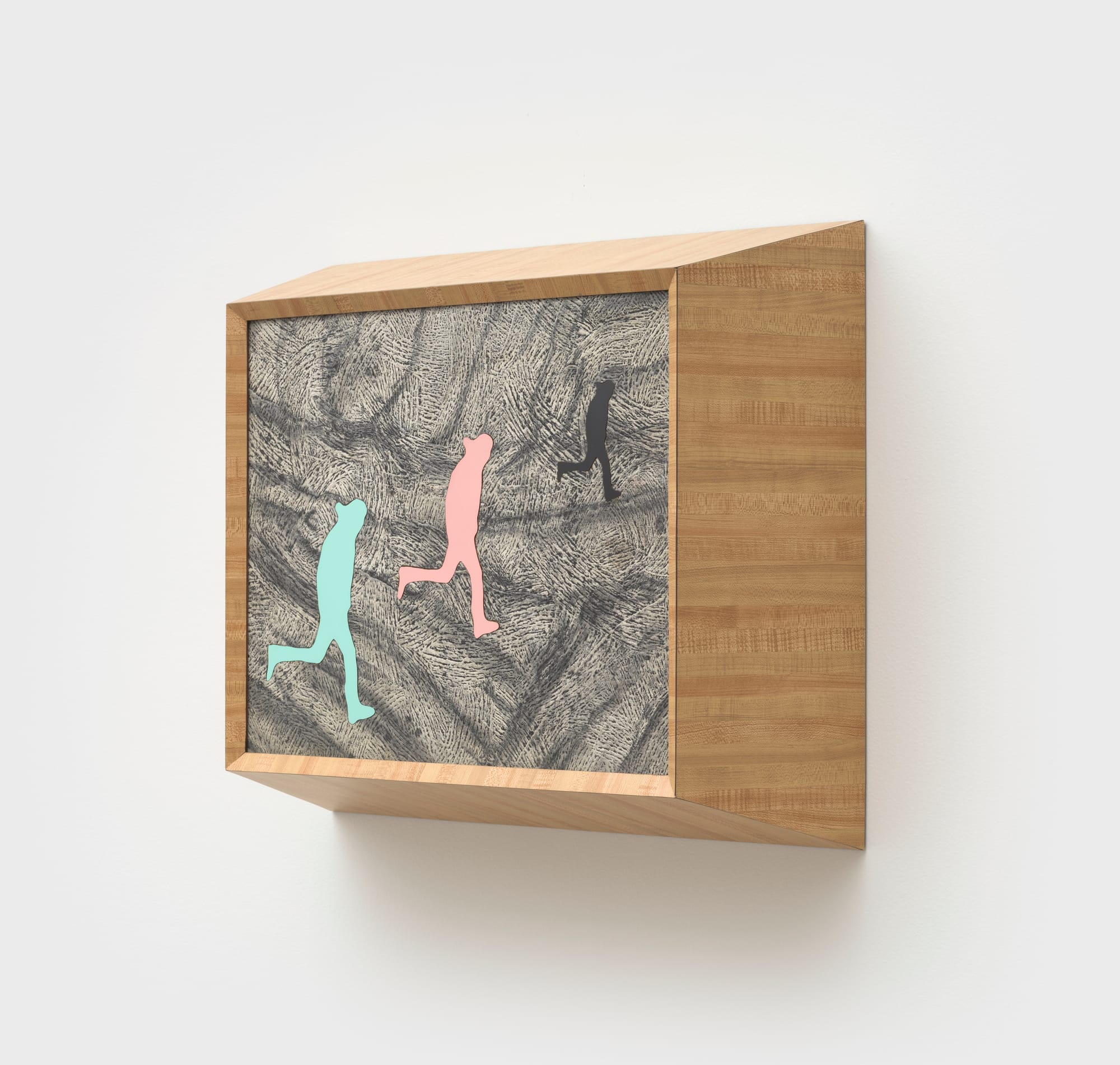 Richard Artschwager, "Running Man (triple)" (2013), laminate and acrylic on Celotex in artist's frame, 21 1/4 x 25 1/2 x 8 inches (all images courtesy David Nolan Gallery)