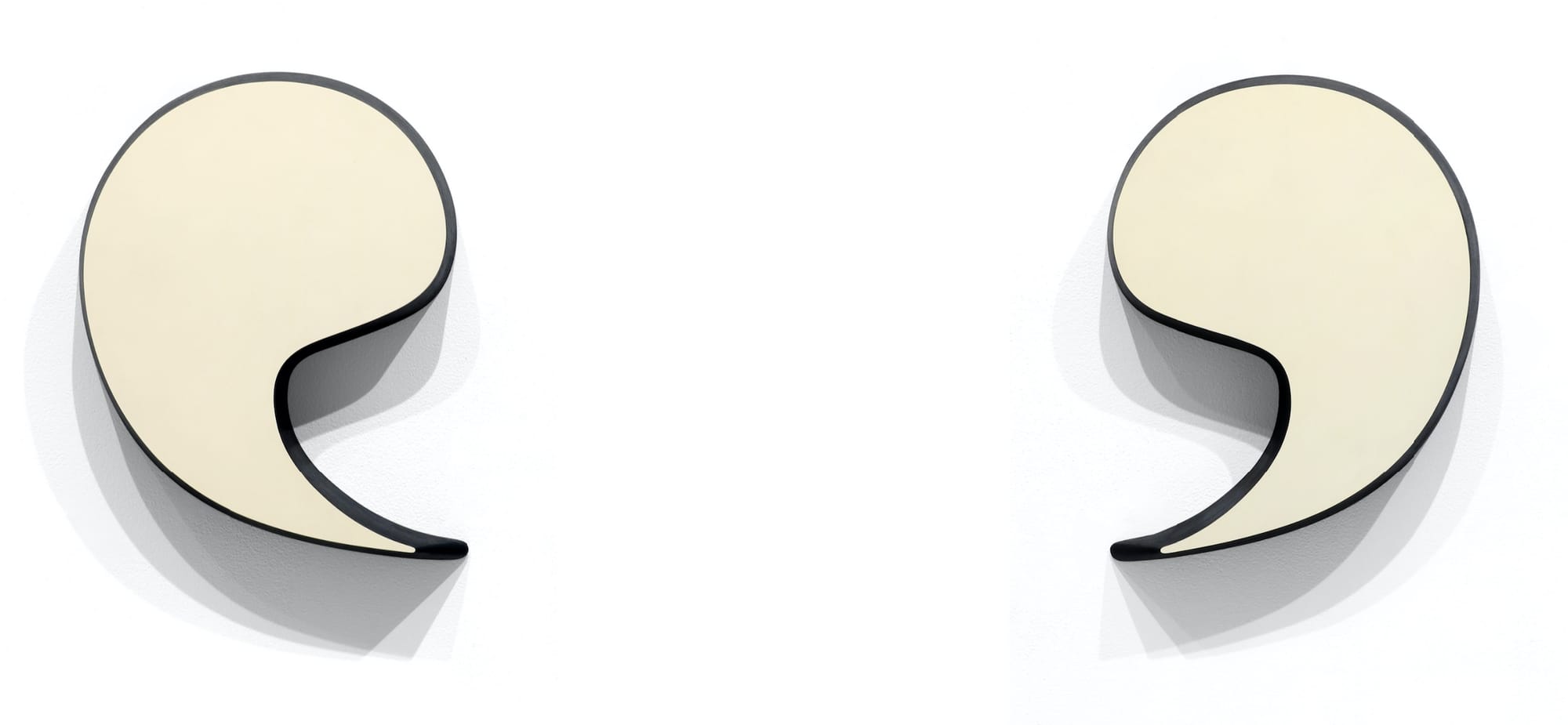 Richard Artschwager, "Quotation Marks" (1980), Formica and painted wood, in two parts, each 15 1/2 x 11 x 2 inches