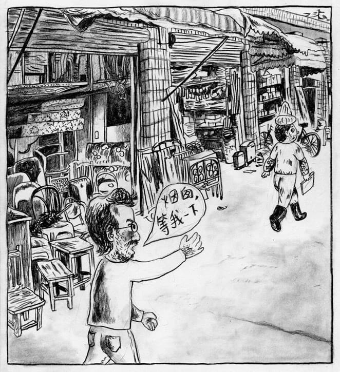 SHANGHAI — When Yan Cong started self-publishing comics in the mid-2000s, his work ignored the conventions of the manga-influenced Chinese comics industry and looked instead like characters from children’s cartoons had wandered into an unexpectedly adult world. His 2007 work Harry Totter is a meandering story that moves at will from one protagonist to another. Early in the book, one of the characters is crying in a field, ripping up the grass and eating it. Only when he lays his head in a puddle of tears and looks at the sky does he seem content.