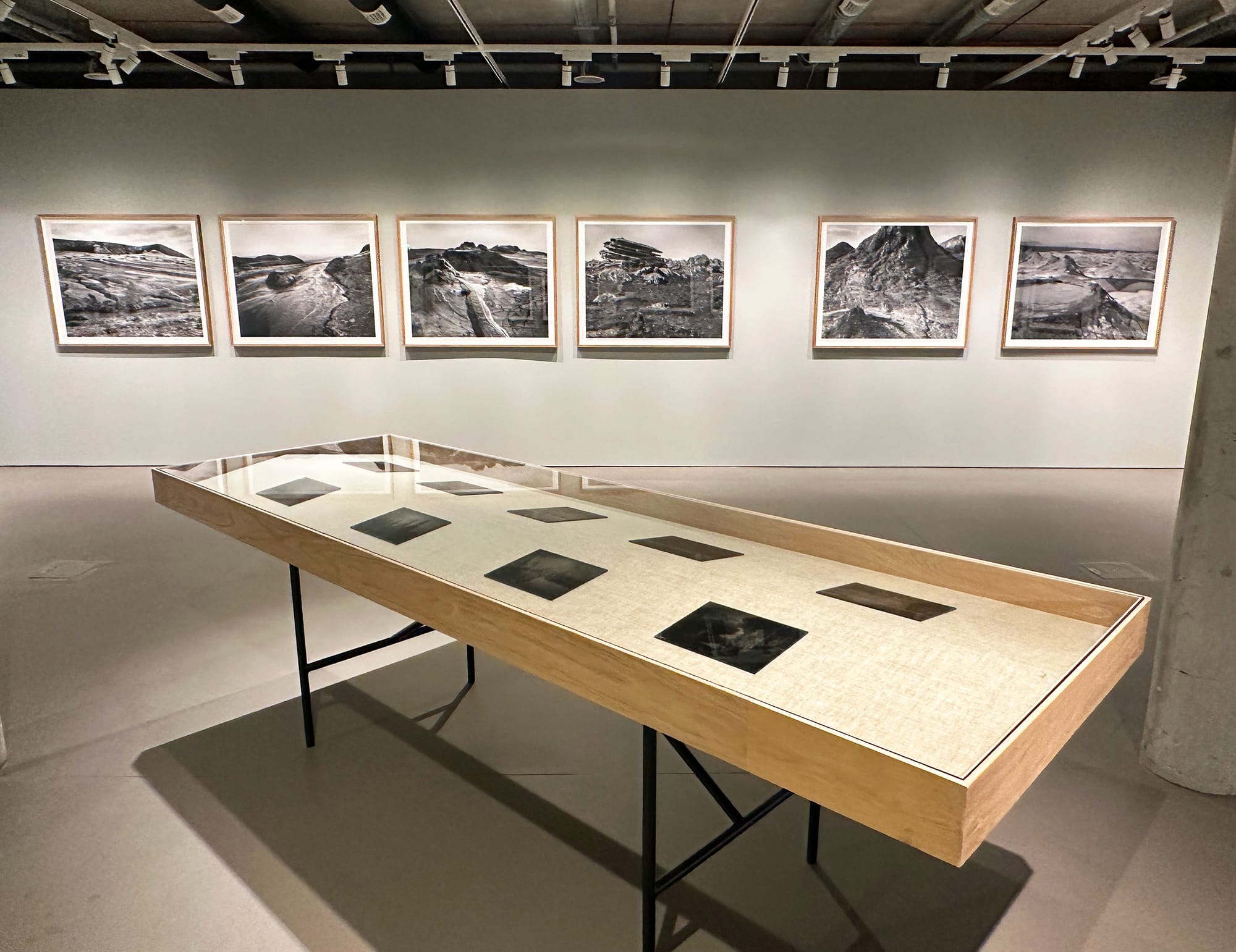Yana Kononova’s large-scale, black and white photographs, at once voluptuous and foreboding, are of mud volcanoes and rocky terrain in oil-producing Azerbaijan, formerly part of the Soviet Union. They are coupled with “Incendiary Lands” (2025), comprising reprints of archival photos in a vitrine showing derricks and infrastructure from the late 19th and early 20th centuries. Russians were central to the development of the petroleum industry in Azerbaijan. Now, oil and gas fuel the Russian economy and war machine: Oil profits equal death for Ukrainians. Many countries are looking to independent Azerbaijan as a replacement for Russian petroleum. Kononova was born on the Azerbaijani island of Pirallahi and emigrated with her family to Ukraine during the First Nagorno-Karabakh War from 1988 to ’94 (part of the nation’s ongoing attacks on Armenian communities and cultural heritage). She is now living through another war. Juxtaposing geological and human time, her primeval landscapes link fossil fuels with global warming and war.
