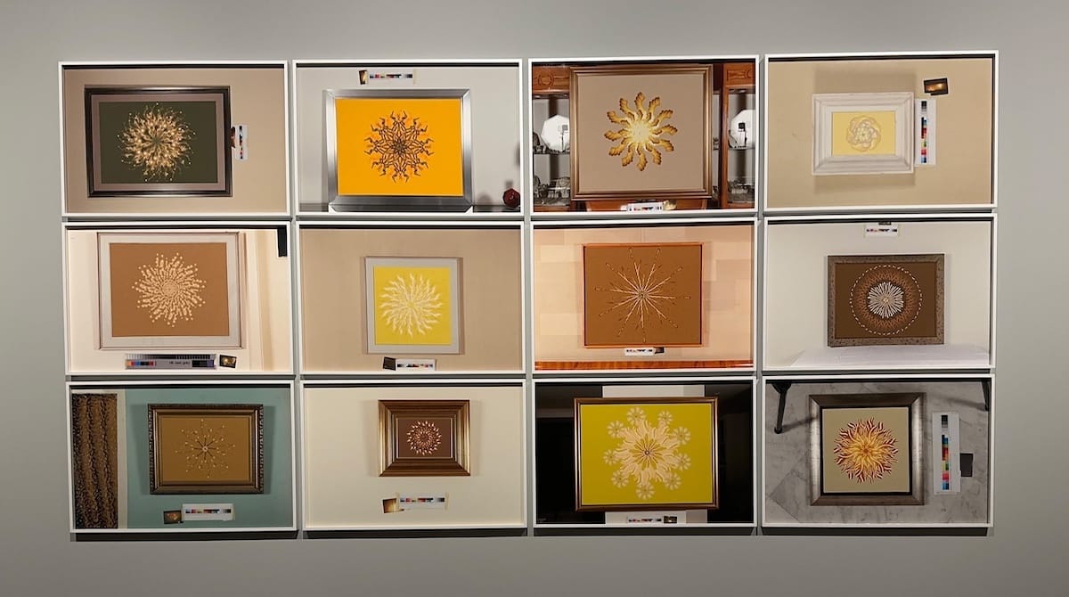Conceptual, visual, and material correspondences course through this sensitively curated exhibition. A single, prominent sunflower in Japanese photographer Nobuyoshi Araki’s street scene “Tokyo Fine Day” (1993/2025), one of several photographs from early in his career in the exhibition, is especially apt here: The sunflower is a symbol of Ukraine. Lebanese artist Walid Raad’s vibrant inkjet prints are geometric abstractions that also resemble flowers, including sunflowers in some cases, as in the series Appendix 153, part of The Atlas Group (1989–2004) which archived imagined stories and artifacts of the Lebanese Civil War.
