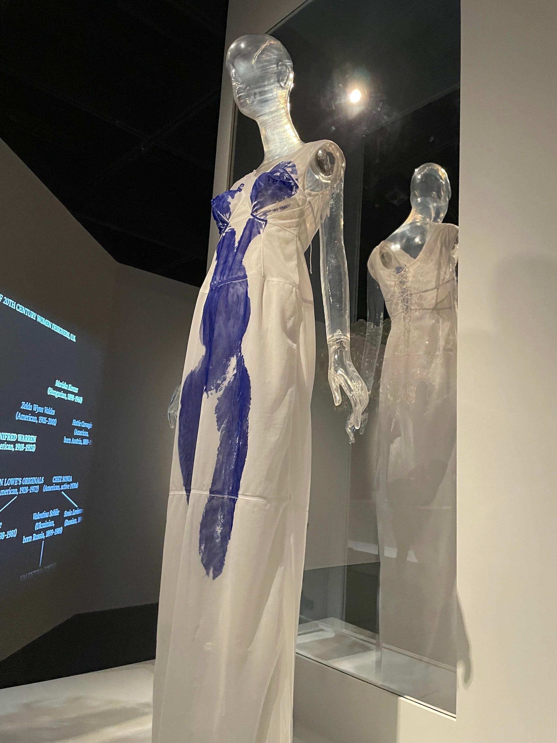 But for a show three years in the making, Women Dressing Women is thin in places. The two digital objects — a slideshow of couturiers and sewists at work and a timeline of the designers and fashion houses featured in the show — are both weirdly lo-fi. The slideshow lacks information; it’s just atmosphere, and there’s basically no attempt to identify the people it shows. The timeline zooms at such high speed that several visitors told me they felt motion-sick, and at times the text is so small that it’s just pixels and fuzz. The lineage of designers is reproduced in the catalogue, which is a gorgeously photographed and designed companion, but retails for $50. I wondered at the choice not to simply display these timelines and family trees on the wall — it would be far more legible and useful as a reference point for visitors.