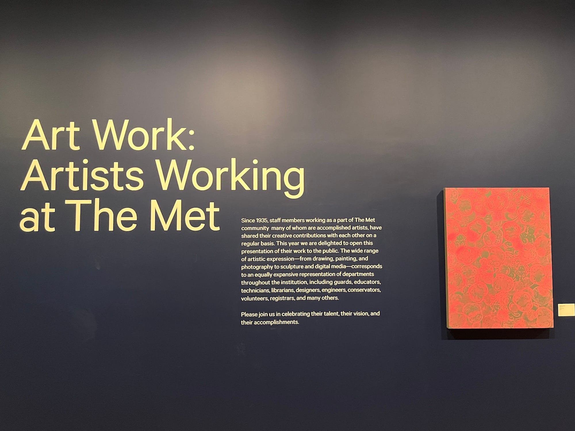 In an interview with Hyperallergic, Schear described feeling awe-struck as she walked through the exhibition and saw her coworkers' names on wall labels alongside stunning works of art.