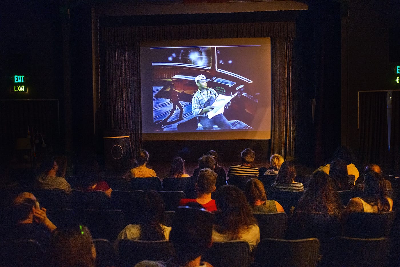 Velas did not first encounter Davinci through his films, however, but through his paintings. In August 2021, she urgently needed signs painted for a project when she came upon a red truck covered with portraits and hand lettering at a supermarket parking lot. She waited for the owner to come out of the store and met Davinci, who ended up painting the signs for the Panorama’s Union Square Florist Shop. He casually mentioned his films. “One of these days I’m gonna bring you some of my movies, you might find them interesting,” Velas recalls him telling her. She was struck by the similarities between The King Show and her Panorama, which revives a pre-cinematic form of landscape painting in the round. “Both of our projects, in different ways, riff on themes of facades, illusions, tropes of cinema, the hopes-dreams-and-nightmares given to us by Hollywood,” she said. In August 2022, the Panorama held its first screening of Davinci’s films to commemorate the 25th anniversary of The King Show’s debut. This week's all-day screening will present a larger selection and invite viewers to vote on their favorite film and even enjoy a hot dog grilled by Davinci himself.