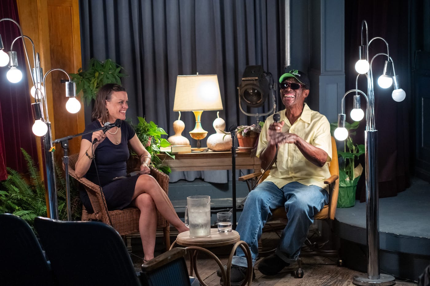 Davinci’s “extreme DIY nature” is not limited to his filmmaking but extends across all his creative endeavors. He trained as a sign painter in Delaware where he grew up, and supported himself painting signs and portraits as a young man. He was the singer of a Gospel group, the Supreme Echoes, when he lived in Buffalo, New York in the mid-1970s, and continues to record his own songs that — like his films — sample elements of influences such as Otis Redding and the Manhattans. (His prolific audio-visual output can be found on one of his three YouTube channels, or three websites he's created.) Above his red Toyota minivan, he has built a painting studio covered with portraits of Elvis, Marilyn Monroe, James Dean, Barry White, Selena, and Bonnie and Clyde alongside advertisements for paintings and haircuts (he is a master barber.) The vehicle is usually parked at the corner of Manchester and St. Andrews, just outside the studio where The King Show was filmed.