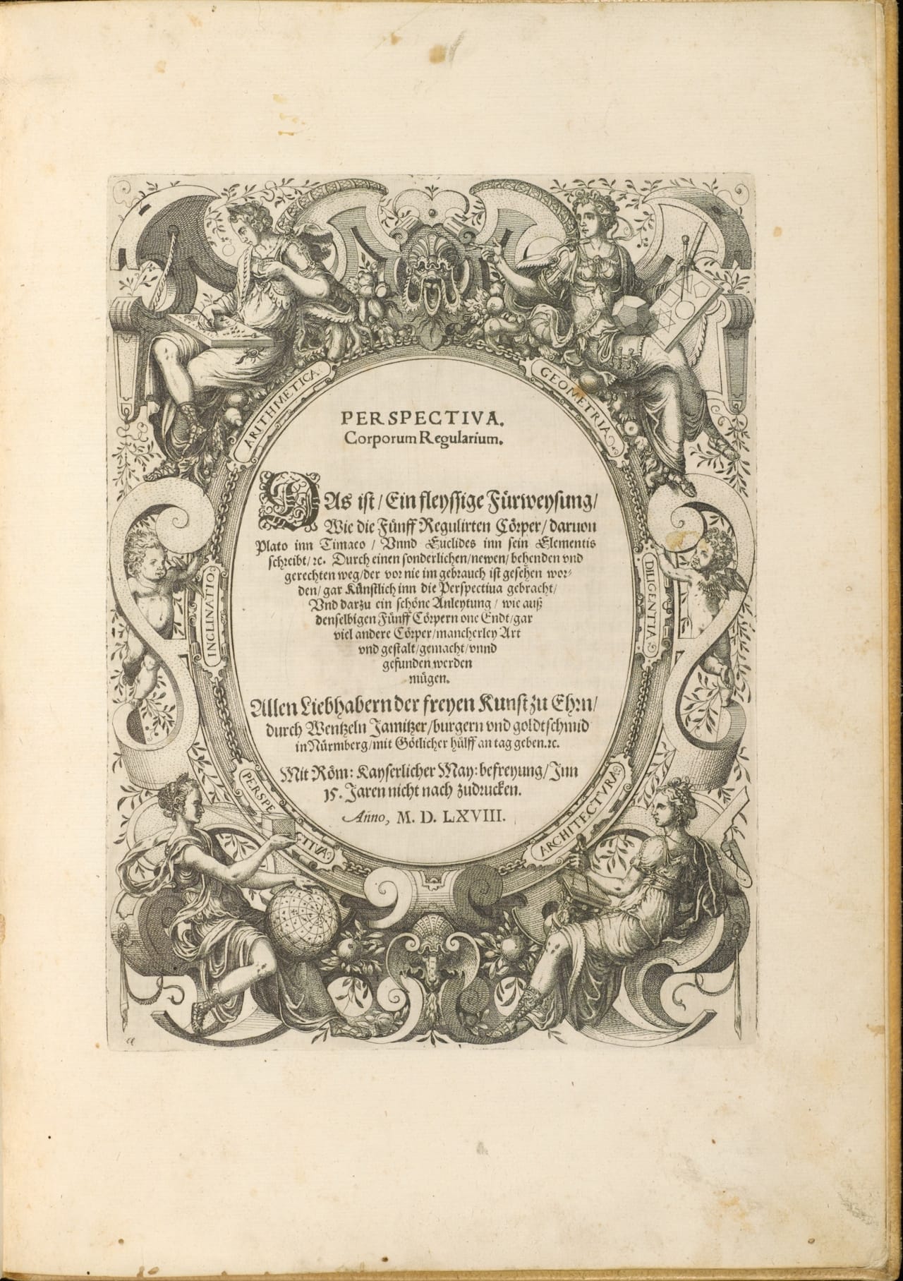 Title page of Wenzel Jamnitzer’s Perspectiva corporum regularium
