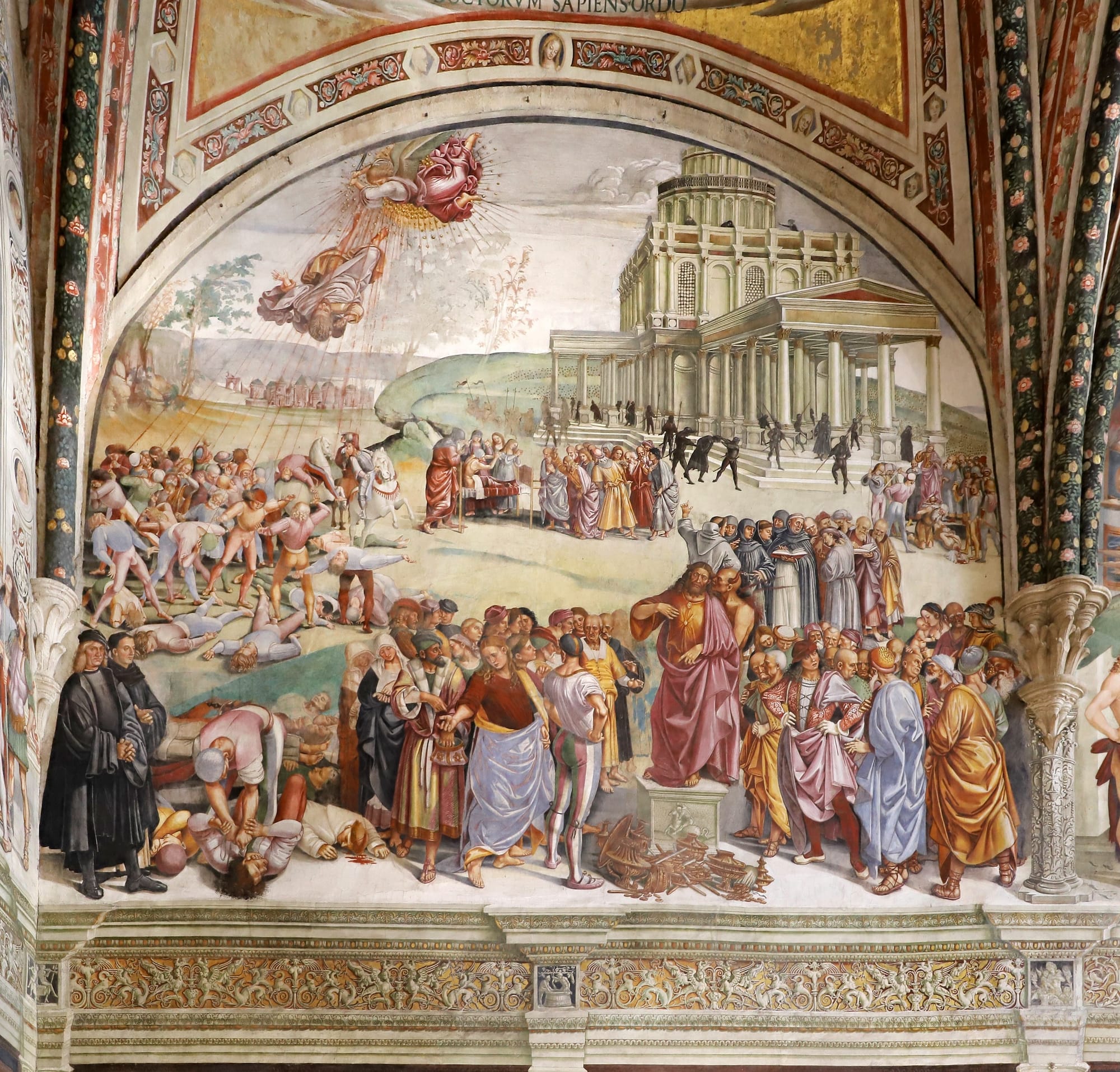 During the late Middle Ages, Christian scholars promoted the idea of multiple antichrists before the main Antichrist would emerge. Claims of antichrists also positioned one group, Christians, as a savior of humanity within a divinely ordained plan. As medievalist Michael Ryan has argued, by the end of the Middle Ages and into the Renaissance, clerics and then Protestants also wielded the Antichrist as a rhetorical tool to call for institutional reform within the papacy and the Church. In the Italian city of Orvieto, the Renaissance artist Luca Signorelli would paint the hugely influential work “The Sermon and Deeds of the Antichrist” (1499–1502) in the Chapel of San Brizio in the midst of economic and social upheaval in the city, as well as rainstorms, plague, and other ominous signs that might portend the end times.