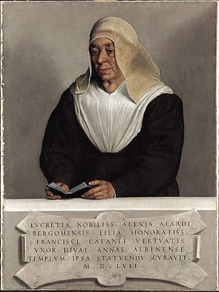In “Abbess Lucrezia Agliardi Vertova”, the subject is holding an open prayer book, with both hands resting on a surface. The index finger of her left hand is separate from the other three fingers, as if it is making an involuntary gesture that the introspective Abbess isn’t even aware of.