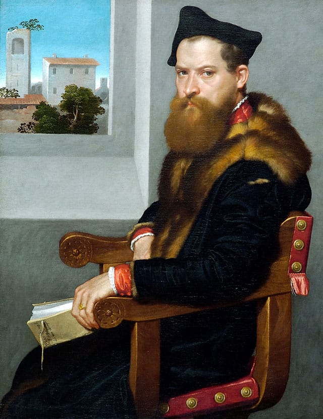 What is striking about Moroni’s portraits is that he seems never to have retreated into a style, never flattered or generalized the sitter’s features. He kept himself open and empathetic to his subjects, even when they are perhaps a little tense and annoyed at having to be still for so long; even when they are analyzing him and by extension the viewer. On an almost subliminal level, one senses that Moroni’s subjects are aware that time is passing, and there are a lot more rewarding things one can be doing besides getting your portrait done.