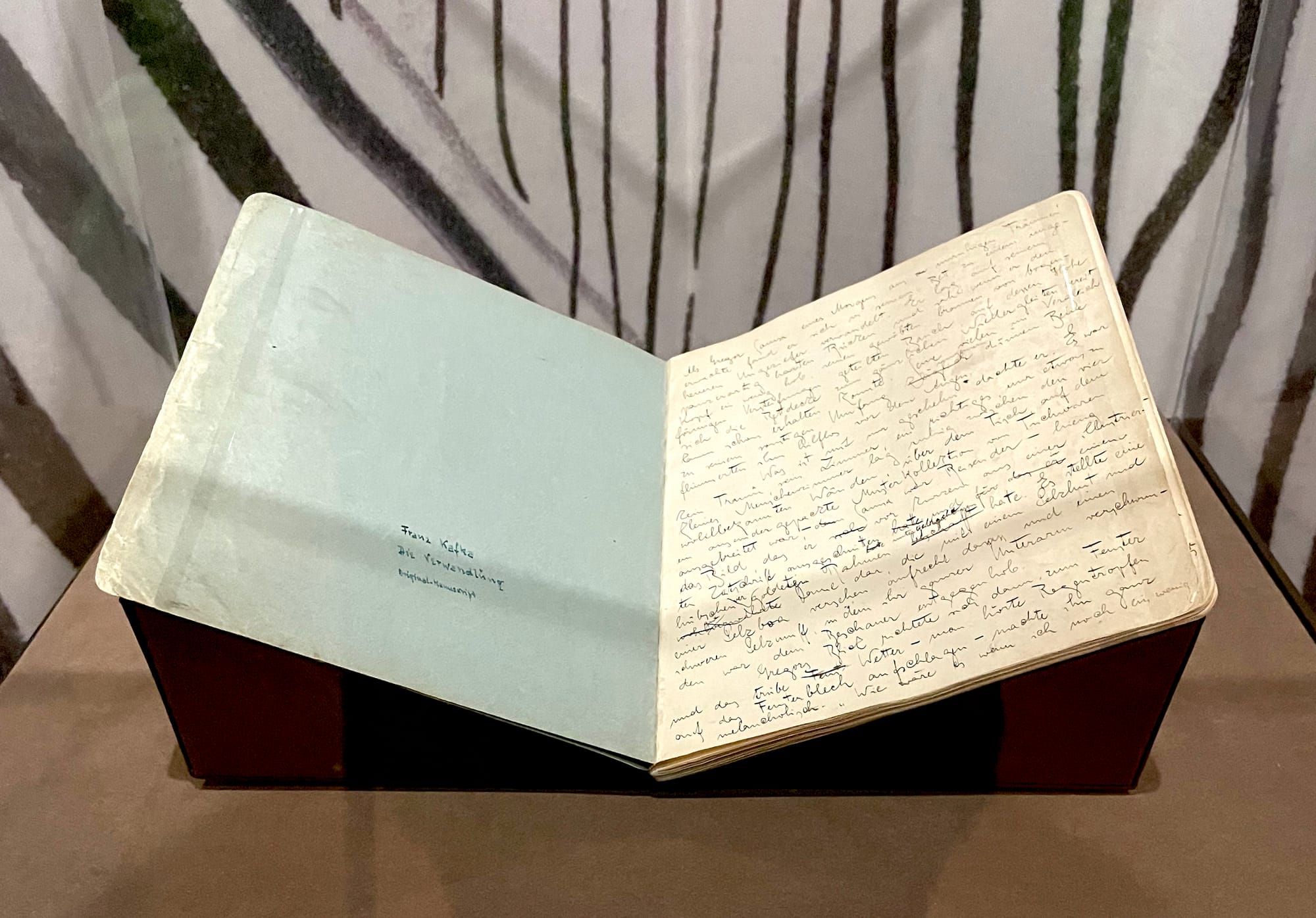 Works by a few other artists and writers are on view, including some marked-up manuscript pages from Philip Roth, but the Kafka material is the draw. The curators highlight connections between his life and writing, but prioritize biography over interpretation, so visitors can come to their own conclusions. It’s a relief to avoid the hackneyed interpretations of Kafka that multiply with each new edition. Yet, for an author so singular that his literature spawned its own adjective, something about all the archival information feels frustrating … almost bureaucratic.