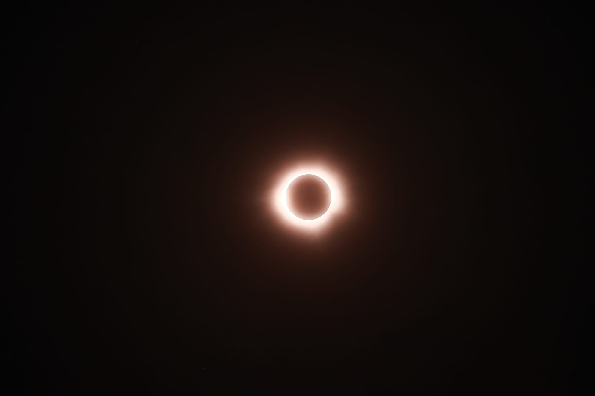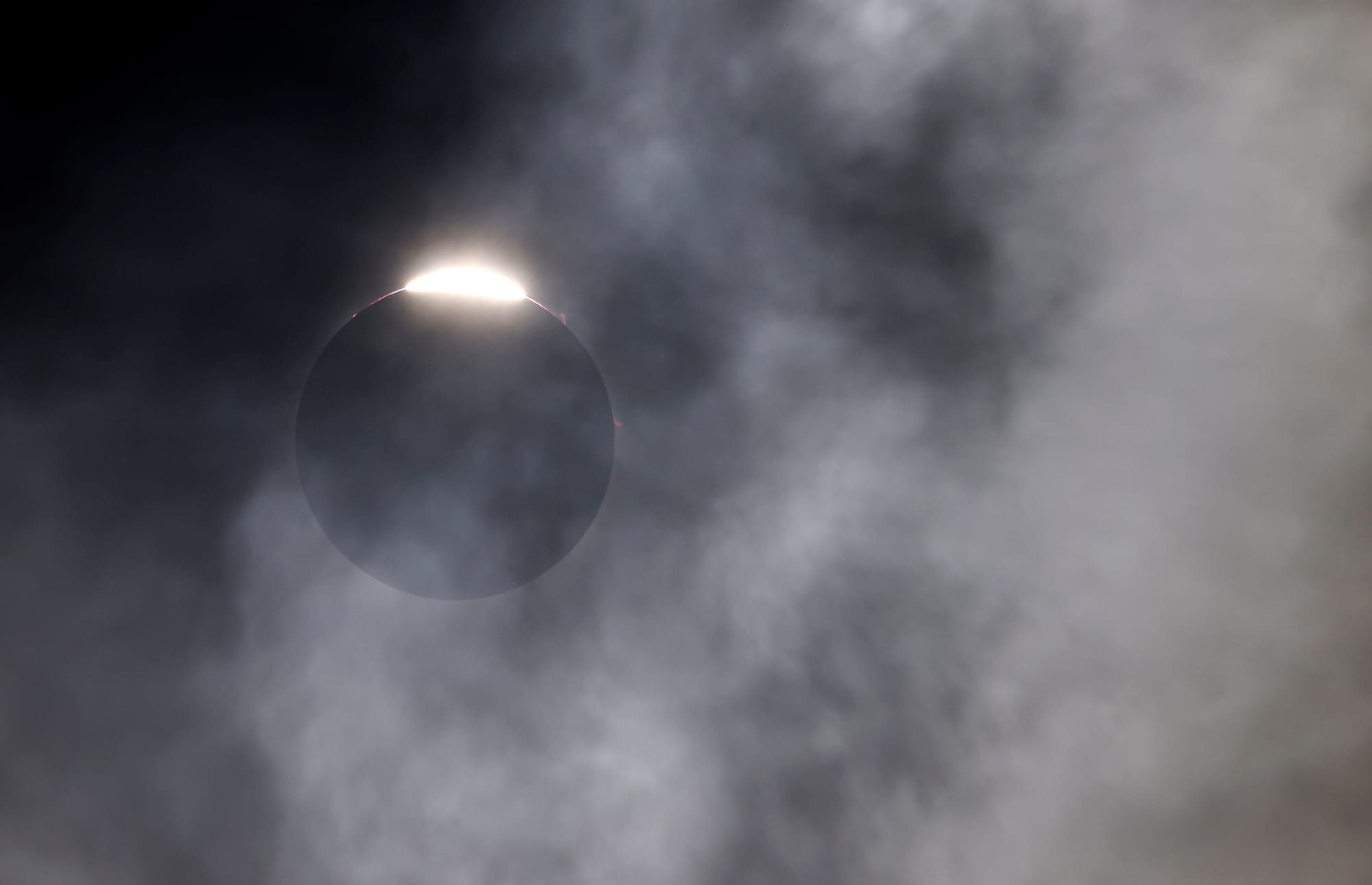 The path of totality encompassed a wide swath of Texas, as well. One photo captured the final moments before the moon overtook the sun above Fort Worth, when viewers could observe the "diamond ring effect."