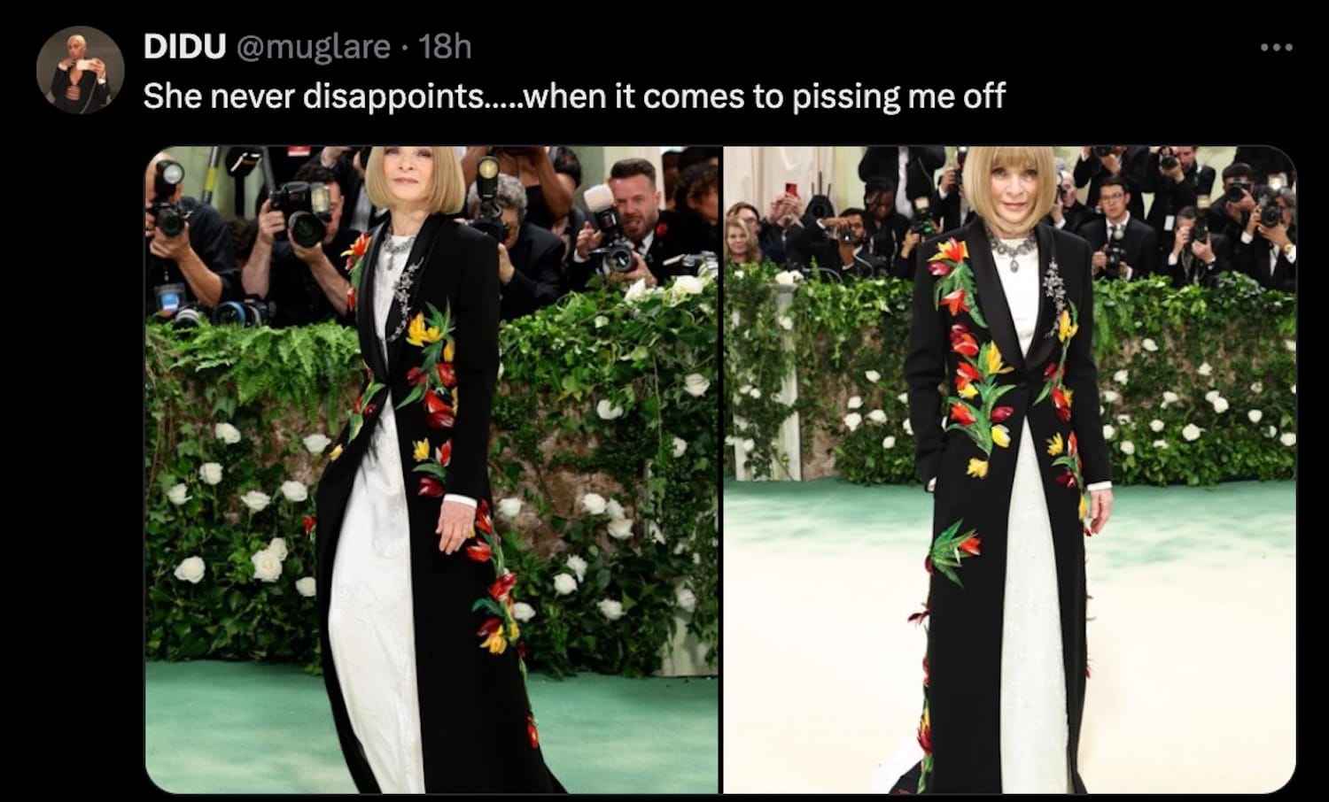 And to that point, what's a Met Gala without some annual Anna Wintour hate to get the party started? I just know that the girl who asked for Wintour's ID in 2022 is smirking right now, as she should.