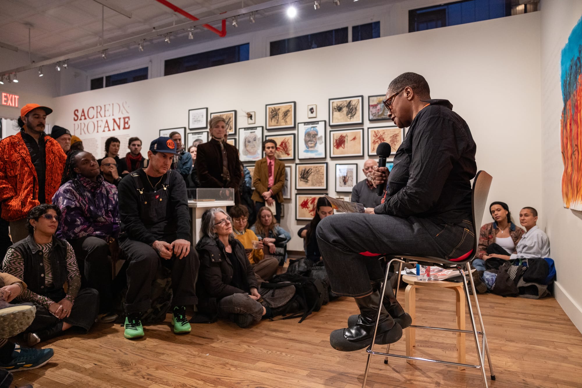 The poet and painter Pamela Sneed reads a poem in which she dreams she meets all her friends in urgent care. A packed room is gathered around her inside Sacred and Profane, her exhibition with the visual and performance artist Carlos Martiel at the Leslie-Lohman Museum in SoHo. The Leslie-Lohman, the first institution of its kind in the world, has recently become a haven for the elevation and preservation of art by and for an “us” that has been subject to unrelenting and escalating political attacks. Who are we? Lesbian. Gay. Bisexual. Transgender. Queer. Questioning. Intersex. Plus. Black. Brown. Indigenous. People of Color. Sneed: “We are all in urgent care.”